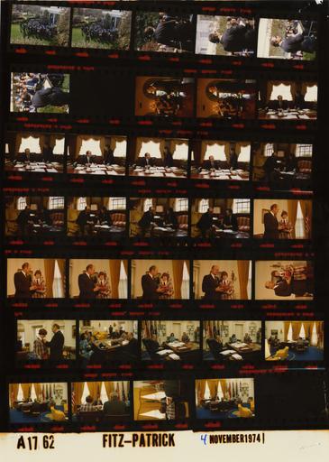 Keywords: Ford A1762 NLGRF photo contact sheet (1974-11-04)(Gerald Ford Library).jpg White House Photographic Office WHPO is housed at the Gerald R Ford Presidential Library a branch of the National Archives and Records Administration NARA <br/><br/> This file is a 200 dpi photo contact sheet having images from roll of film A1762 of the August 9 1974 - January 20 1977 Gerald R Ford White House Photographic Office Series A0001-A9999 and B0001-B2886 photographs <br/><br/> The date on the photo contact sheet is the date the roll of film was processed not necessarily the date the photographs were taken See table below for additional details 1974-11-04 Gerald R Ford Presidential Library Image http //www fordlibrarymuseum gov/library/whphotos/A1762_NLGRF jpg A1762_NLGRF jpg from http //www fordlibrarymuseum gov/library/whphotos/19741104whpo pdf White House Photographs November 4 1974 of the http //www fordlibrarymuseum gov/Library/whphotos/whpo asp White House Photographic Collection page White House Photographic Office WHPO - Fitz-Patrick PD-USGov Institution Institution Gerald R Ford Presidential Library Table wikitable sortable + Photo contact sheet A1762 U S President Ford Administration Gerald R Ford Library Frame s Tone Subject proper Subject generic Names Geographic Location Photographer Date - 4-5 Color Daily Press Briefing Nessen at podium speaking; media standing; taken from West Wing roof Nessen Media Rose Garden Fitz-Patrick 1974-11-04 - 6-9 Color Daily Press Briefing Nessen at podium speaking; media standing; close up taken from behind Nessen Nessen Media Rose Garden Fitz-Patrick 1974-11-04 - 10 Color Fitz-Patrick 1974-11-04 - 11-12 Color Display of Space Crystal Grown Aboard Skylab in 1974 - Administrator National Aeronautics and Space Administration NASA Fletcher standing speaking near table James Fletcher Media Cabinet Room Fitz-Patrick 1974-11-04 - 13-17 Color Photo Opportunity Ash seated at table Staffer leaning on table; documents cover table Ash Staffer Executive Office Building - Office of Management and Budget Fitz-Patrick 1974-11-04 - 18-22 Color Photo Opportunity seated on chairs; looking at documents Ash Staffer Executive Office Building - Office of Management and Budget Fitz-Patrick 1974-11-04 - 23-28 Color Photo Opportunity - 1974-75 Poster Child for the Epilepsy Foundation of America standing GRF holding football GRF Brian Molloy Oval Office Fitz-Patrick 1974-11-04 - 29 Color Photo Opportunity - 1974-75 Poster Child for the Epilepsy Foundation of America standing GRF pinning button on boy's lapel GRF Brian Molloy Oval Office Fitz-Patrick 1974-11-04 - 30-37 Color Meeting with 1974-75 Poster Child for the Epilepsy Foundation of America - Parents Executive Vice President Epilepsy Foundation of America seated around desk talking; various angles and distances; all not in every frame GRF Brian Molloy Mr Mrs Molloy Paul Funk Oval Office Fitz-Patrick 1974-11-04 Gerald R Ford Presidential Library and Museum-cooperation PD-USGov Contact sheets by the Ford White House November 1974