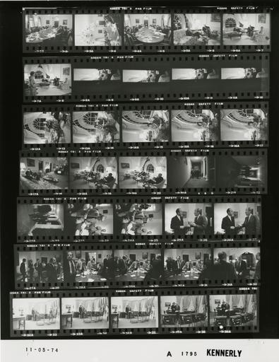 Keywords: Ford A1795 NLGRF photo contact sheet (1974-11-05)(Gerald Ford Library).jpg White House Photographic Office WHPO is housed at the Gerald R Ford Presidential Library a branch of the National Archives and Records Administration NARA <br/><br/> This file is a 200 dpi photo contact sheet having images from roll of film A1795 of the August 9 1974 - January 20 1977 Gerald R Ford White House Photographic Office Series A0001-A9999 and B0001-B2886 photographs <br/><br/> The date on the photo contact sheet is the date the roll of film was processed not necessarily the date the photographs were taken See table below for additional details 1974-11-05 Gerald R Ford Presidential Library Image http //www fordlibrarymuseum gov/library/whphotos/A1795_NLGRF jpg A1795_NLGRF jpg from http //www fordlibrarymuseum gov/library/whphotos/19741105whpo pdf White House Photographs November 5 1974 of the http //www fordlibrarymuseum gov/Library/whphotos/whpo asp White House Photographic Collection page White House Photographic Office WHPO - 31AKennerly PD-USGov Institution Institution Gerald R Ford Presidential Library Table wikitable sortable + Photo contact sheet A1795 U S President Ford Administration Gerald R Ford Library Frame s Tone Subject proper Subject generic Names Geographic Location Photographer Date - 31A BW Watching Election Returns standing talking; GRF smoking pipe GRF Marsh Ash Burch Others Roosevelt Room 31AKennerly 1974-11-05 - 2A-4A BW Meeting to Discuss the 1976 Budget of the U S seated around table - all not in every frame GRF Ash Paul O'Neill Dale McOmber Cole Marsh Rumsfeld Seidman Hartmann Baroody Nessen Timmons Scowcroft Others Cabinet Room Kennerly 1974-11-05 - 5A-6A BW Watching Election Returns -Manager for Public and Customer Relations and Aerospace Group Executive for Thiokol Corporation; Sister-in-Law seated in chairs watching television; Janet Ford in frame 6A GRF James Brown Janet Ford Second Floor - West Sitting Room Kennerly 1974-11-05 - 7A BW Watching Election Returns -Manager for Public and Customer Relations and Aerospace Group Executive for Thiokol Corporation; Consultant Counsellor to the President; Sister-in-Law Betty Ford standing others seated in chairs watching television GRF Betty Ford Jack Stiles James Brown Janet Ford Second Floor - West Sitting Room Kennerly 1974-11-05 - 8A-11A BW Watching Election Returns -Consultant Counsellor to the President seated in chairs watching television - Stiles back to camera; taken through partially closed doorway GRF Jack Stiles Second Floor - West Sitting Room Kennerly 1974-11-05 - 12A-16A BW Watching Election Returns seated together on couch watching television GRF Betty Ford Second Floor - West Sitting Room Kennerly 1974-11-05 - 17A BW Watching Election Returns -Manager for Public and Customer Relations and Aerospace Group Executive for Thiokol Corporation; Sister-in-Law GRF seated on couch others on chairs; watching television GRF James Brown Janet Ford Second Floor - West Sitting Room Kennerly 1974-11-05 - 18A-19A BW Watching Election Returns -Manager for Public and Customer Relations and Aerospace Group Executive for Thiokol Corporation; Consultant Counsellor to the President GRF and Stiles seated on couch Brown on chair; watching television GRF Jack Stiles James Brown Second Floor - West Sitting Room Kennerly 1974-11-05 - 20A-22A BW Manager for Public and Customer Relations and Aerospace Group Executive for Thiokol Corporation; Consultant Counsellor to the President walking towards Oval Office and camera GRF Jack Stiles James Brown Secret Service Colonnade Kennerly 1974-11-05 - 23A-24A BW Burch in foreground seated on table; others in background Burch Hartmann Others Roosevelt Room Kennerly 1974-11-05 - 25A-26A BW standing talking GRF Ash Roosevelt Room Kennerly 1974-11-05 - 27A-30A BW Watching Election Returns seated standing talking looking at television -all not in every frame Carlson Nessen Hartmann Betty Ford GRF Rumsfeld Timmons Marsh Cheney Ash Others Roosevelt Room Kennerly 1974-11-05 - 32A-36A BW Watching Election Returns seated on edge of desk watching televisions GRF Betty Ford Oval Office Kennerly 1974-11-05 Gerald R Ford Presidential Library and Museum-cooperation PD-USGov Contact sheets by the Ford White House November 1974 |