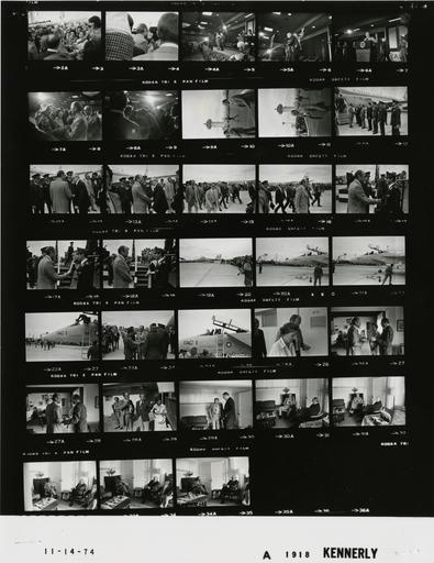 Keywords: Ford A1918 NLGRF photo contact sheet (1974-11-14)(Gerald Ford Library).jpg White House Photographic Office WHPO is housed at the Gerald R Ford Presidential Library a branch of the National Archives and Records Administration NARA <br/><br/> This file is a 200 dpi photo contact sheet having images from roll of film A1918 of the August 9 1974 - January 20 1977 Gerald R Ford White House Photographic Office Series A0001-A9999 and B0001-B2886 photographs <br/><br/> The date on the photo contact sheet is the date the roll of film was processed not necessarily the date the photographs were taken See table below for additional details 1974-11-14 Gerald R Ford Presidential Library Image http //www fordlibrarymuseum gov/library/whphotos/A1918_NLGRF jpg A1918_NLGRF jpg from http //www fordlibrarymuseum gov/library/whphotos/19741114whpo pdf White House Photographs November 14 1974 of the http //www fordlibrarymuseum gov/Library/whphotos/whpo asp White House Photographic Collection page White House Photographic Office WHPO <br/> Creator David Hume Kennerly PD-USGov Institution Institution Gerald R Ford Presidential Library Table wikitable sortable + Photo contact sheet A1918 U S President Ford Administration Gerald R Ford Library Frame s Tone Subject proper Subject generic Names Geographic Location Photographer Date - 2A-3A BW Trip to Nevada - Las Vegas Nevada greeting handshaking being kissed in 3A GRF Crowd Las Vegas NV McCarran International Airport Kennerly 1974-11-14 - 4A-6A BW Trip to Nevada; Speech before the 67th Annual Convention of the National Association of Realtors NAR ; President NAR -Las Vegas Nevada standing near podium GRF raising gift GRF Joseph Doherty Las Vegas NV Las Vegas Hilton Hotel Kennerly 1974-11-14 - 7A-8A BW Trip to Nevada; Following Speech before the 67th Annual Convention of the National Association of Realtors - Las Vegas Nevada greeting handshaking GRF Crowd Las Vegas NV Las Vegas Hilton Hotel Kennerly 1974-11-14 - 9A-10A BW Trip to Nevada; Prior to Departure for Arizona - Las Vegas Nevada walking across tarmac towards Air Force One GRF Las Vegas NV McCarran International Airport Kennerly 1974-11-14 - 11A-13A BW Trip to Arizona; Governor; United States Senator and Representative from Arizona AZ ; Air Force Chief of Staff; Commander Tactical Air Command; Wing Commander; Publisher Phoenix Register and Gazette - Phoenix Arizona greeting handshaking -Air Force One in background; all not in every frame GRF Gov Williams Sen Fannin Rep Rhodes Mayor Barrow Gen David Jones Brig Gen Fred Haeffner Eugene C Pulliam Phoenix AZ Luke Air Force Base Kennerly 1974-11-14 - 14A-15A BW Trip to Arizona; Prior to Ceremony to Commemorate the Delivery of the First F-15 Eagle Fighter Aircraft - Phoenix Arizona walking towards speaker's platform GRF Secret Service Crowd Phoenix AZ Luke Air Force Base - Tarmac Kennerly 1974-11-14 - 16A-18A BW Trip to Arizona; Senior Ranking German Officer in Advanced Flying Training - Phoenix Arizona greeting handshaking GRF Lt Juergin Dessau Mrs Dessau Phoenix AZ Luke Air Force Base Kennerly 1974-11-14 - 19A-22A BW Trip to Arizona; Prior to Ceremony to Commemorate the Delivery of the First F-15 Eagle Fighter Aircraft - Phoenix Arizona watching F-15 Eagle taxi into position - GRF walking towards plane in last frame plane GRF Crowd Air Force Personnel Phoenix AZ Luke Air Force Base - Flight Line Kennerly 1974-11-14 - 23A BW Trip to Arizona; Prior to Ceremony to Commemorate the Delivery of the First F-15 Eagle Fighter Aircraft; Air Force Chief of Staff; Pilots - Phoenix Arizona greeting handshaking crowd in background GRF Gen David Jones; Lt Col Ernest Laudise Col Francis Bloomcamp Phoenix AZ Luke Air Force Base - Flight Line Kennerly 1974-11-14 - 24A BW Trip to Arizona; Ceremony to Commemorate the Delivery of the First F-15 Eagle Fighter Aircraft; Pilot - Phoenix Arizona looking in cockpit of F-15 Eagle plane GRF Lt Col Ernest Ted Laudise Phoenix AZ Luke Air Force Base - Flight Line Kennerly 1974-11-14 - 25A-34A BW Trip to Arizona; Chairman Marriott Corporation - Scottsdale Arizona seated talking in room - all not in every frame; first frame is exterior GRF Mr Mrs J Willard Marriott Scottsdale AZ Camelback Inn Kennerly 1974-11-14 Gerald R Ford Presidential Library and Museum-cooperation PD-USGov Contact sheets by the Ford White House November 1974 Photographs by David Hume Kennerly from 1974 J Willard Marriott Luke Air Force Base |