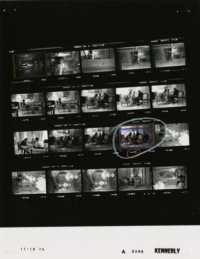 Keywords: Ford A2046 NLGRF photo contact sheet (1974-11-19)(Gerald Ford Library).jpg White House Photographic Office WHPO is housed at the Gerald R Ford Presidential Library a branch of the National Archives and Records Administration NARA <br/><br/> This file is a 200 dpi photo contact sheet having images from roll of film A2046 of the August 9 1974 - January 20 1977 Gerald R Ford White House Photographic Office Series A0001-A9999 and B0001-B2886 photographs <br/><br/> The date on the photo contact sheet is the date the roll of film was processed not necessarily the date the photographs were taken See table below for additional details 1974-11-19 Gerald R Ford Presidential Library Image http //www fordlibrarymuseum gov/library/whphotos/A2046_NLGRF jpg A2046_NLGRF jpg from http //www fordlibrarymuseum gov/library/whphotos/19741119whpo pdf White House Photographs November 19 1974 of the http //www fordlibrarymuseum gov/Library/whphotos/whpo asp White House Photographic Collection page White House Photographic Office WHPO <br/> Creator David Hume Kennerly PD-USGov Institution Institution Gerald R Ford Presidential Library Table wikitable sortable + Photo contact sheet A2046 U S President Ford Administration Gerald R Ford Library Frame s Tone Subject proper Subject generic Names Geographic Location Photographer Date - 9A-12A BW Trip to Japan - 1st Visit to Japan by Sitting U S President - Local Time seated around table talking; GRF smoking pipe wearing pajamas GRF O'Donnell Todd Tokyo Japan Akasaka Palace - Suite of Honour President's Quarters Kennerly 1974-11-19 - 13A-15A BW Trip to Japan - 1st Visit to Japan by Sitting U S President - Local Time seated around table talking; GRF smoking pipe wearing pajamas GRF O'Donnell Todd Rumsfeld Tokyo Japan Akasaka Palace - Suite of Honour President's Quarters Kennerly 1974-11-19 - 16A-21A BW Trip to Japan - 1st Visit to Japan by Sitting U S President - Prior to Arrival Ceremony with Emperor Hirohito - Local Time seated smoking pipe reading; wearing vest and striped ascot - long shots GRF Tokyo Japan Akasaka Palace - Suite of Honour President's Quarters Kennerly 1974-11-19 - 2A BW Trip to Japan - 1st Visit to Japan by Sitting U S President - Local Time standing near window smoking pipe - wearing pajamas; silhouette - long shot GRF Tokyo Japan Akasaka Palace - Suite of Honour President's Quarters Kennerly 1974-11-19 - 3A BW Trip to Japan - 1st Visit to Japan by Sitting U S President - Local Time O'Donnell standing; GRF seated reading; wearing pajamas GRF O'Donnell Tokyo Japan Akasaka Palace - Suite of Honour President's Quarters Kennerly 1974-11-19 - 4A-8A BW Trip to Japan - 1st Visit to Japan by Sitting U S President - Local Time seated reading smoking pipe; wearing pajamas various distances GRF Tokyo Japan Akasaka Palace - Suite of Honour President's Quarters Kennerly 1974-11-19 Gerald R Ford Presidential Library and Museum-cooperation PD-USGov Contact sheets by the Ford White House November 1974 Photographs by David Hume Kennerly from 1974 |