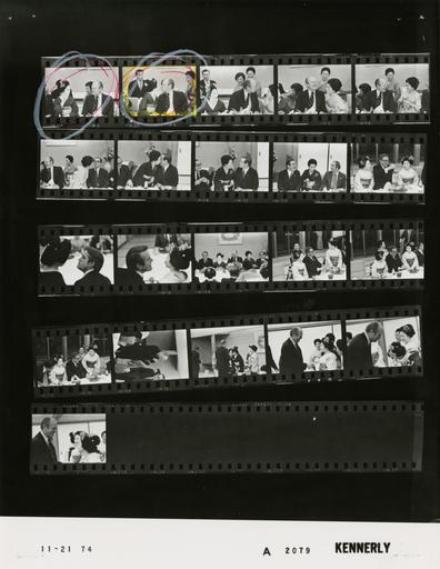 | Keywords: Ford A2079 NLGRF photo contact sheet (1974-11-21)(Gerald Ford Library).jpg White House Photographic Office WHPO is housed at the Gerald R Ford Presidential Library a branch of the National Archives and Records Administration NARA <br/><br/> This file is a 200 dpi photo contact sheet having images from roll of film A2079 of the August 9 1974 - January 20 1977 Gerald R Ford White House Photographic Office Series A0001-A9999 and B0001-B2886 photographs <br/><br/> The date on the photo contact sheet is the date the roll of film was processed not necessarily the date the photographs were taken See table below for additional details 1974-11-21 Gerald R Ford Presidential Library Image http //www fordlibrarymuseum gov/library/whphotos/A2079_NLGRF jpg A2079_NLGRF jpg from http //www fordlibrarymuseum gov/library/whphotos/19741121whpo pdf White House Photographs November 21 1974 of the http //www fordlibrarymuseum gov/Library/whphotos/whpo asp White House Photographic Collection page White House Photographic Office WHPO <br/> Creator David Hume Kennerly PD-USGov Institution Institution Gerald R Ford Presidential Library Table wikitable sortable + Photo contact sheet A2079 U S President Ford Administration Gerald R Ford Library Frame s Tone Subject proper Subject generic Names Geographic Location Photographer Date - 3-8 BW Trip to Japan - 1st Visit to Japan by Sitting U S President - Informal Dinner Hosted by Ambassador Ushiba - Local Time seated at long table; playing pass the straw game - all not in every frame GRF Geisha Girls Others Kyoto Japan Tsuruya Restaurant Kennerly 1974-11-21 - 9-11 BW Trip to Japan - 1st Visit to Japan by Sitting U S President - Informal Dinner Hosted by Ambassador Ushiba - Local Time seated at long table; playing pass the straw game - Nessen in third frame only Rumsfeld Geisha Girl Nessen Kyoto Japan Tsuruya Restaurant Kennerly 1974-11-21 - 12 BW Trip to Japan - 1st Visit to Japan by Sitting U S President - Informal Dinner Hosted by Ambassador Ushiba - Local Time seated at long table; playing pass the straw game Kissinger Geisha Girls Kyoto Japan Tsuruya Restaurant Kennerly 1974-11-21 - 13-14 BW Trip to Japan - 1st Visit to Japan by Sitting U S President - Informal Dinner Hosted by Ambassador Ushiba - Local Time seated at long table; playing pass the straw game Amb Catto Geisha Girl Kyoto Japan Tsuruya Restaurant Kennerly 1974-11-21 - 15 BW Trip to Japan - 1st Visit to Japan by Sitting U S President - Informal Dinner Hosted by Ambassador Ushiba - Local Time seated at long table; GRF wearing glasses smoking pipe GRF Geisha Girls Others Kyoto Japan Tsuruya Restaurant Kennerly 1974-11-21 - 16-18 BW Trip to Japan - 1st Visit to Japan by Sitting U S President - Informal Dinner Hosted by Ambassador Ushiba - Local Time seated at long table; girls serving Kissinger Geisha Girls Kyoto Japan Tsuruya Restaurant Kennerly 1974-11-21 - 19-23 BW Trip to Japan - 1st Visit to Japan by Sitting U S President - Informal Dinner Hosted by Ambassador Ushiba - Local Time talking handshaking - all not in every frame GRF Geisha Girls Kyoto Japan Tsuruya Restaurant Kennerly 1974-11-21 Gerald R Ford Presidential Library and Museum-cooperation PD-USGov Contact sheets by the Ford White House November 1974 Photographs by David Hume Kennerly from 1974 |