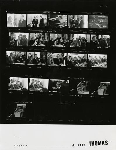 | Keywords: Ford A2158 NLGRF photo contact sheet (1974-11-26)(Gerald Ford Library).jpg White House Photographic Office WHPO is housed at the Gerald R Ford Presidential Library a branch of the National Archives and Records Administration NARA <br/><br/> This file is a 200 dpi photo contact sheet having images from roll of film A2158 of the August 9 1974 - January 20 1977 Gerald R Ford White House Photographic Office Series A0001-A9999 and B0001-B2886 photographs <br/><br/> The date on the photo contact sheet is the date the roll of film was processed not necessarily the date the photographs were taken See table below for additional details 1974-11-26 Gerald R Ford Presidential Library Image http //www fordlibrarymuseum gov/library/whphotos/A2158_NLGRF jpg A2158_NLGRF jpg from http //www fordlibrarymuseum gov/library/whphotos/19741126whpo pdf White House Photographs November 26 1974 of the http //www fordlibrarymuseum gov/Library/whphotos/whpo asp White House Photographic Collection page White House Photographic Office WHPO - Thomas PD-USGov Institution Institution Gerald R Ford Presidential Library Table wikitable sortable + Photo contact sheet A2158 U S President Ford Administration Gerald R Ford Library Frame s Tone Subject proper Subject generic Names Geographic Location Photographer Date - 13 BW Bipartisan Congressional Briefing on Far East Trip - US Senator from Montana MT seated at table talking GRF Sen Mansfield Cabinet Room Thomas 1974-11-26 - 14 BW Bipartisan Congressional Briefing on Far East Trip - US Senators from Montana MT and Pennsylvania PA seated at table talking GRF Sens Mansfield Scott Cabinet Room Thomas 1974-11-26 - 15 BW Bipartisan Congressional Briefing on Far East Trip - US Representatives from Oklahoma OK and Massachusetts MA seated at table talking Reps Albert Thomas P Tip O'Neill Cabinet Room Thomas 1974-11-26 - 16-17 BW Bipartisan Congressional Briefing on Far East Trip - US Senators from Montana MT Pennsylvania PA and Michigan MI ; US Representative from Arizona AZ seated at table listening - Mansfield smoking pipe Sens Mansfield Scott Griffin; Rep Rhodes Cabinet Room Thomas 1974-11-26 - 3 BW Prior to Bipartisan Congressional Briefing on Far East Trip - US Representative from Arizona AZ ; US Senator from Montana MT standing talking Rep Rhodes Sen Mansfield Cabinet Room Thomas 1974-11-26 - 4 BW Prior to Bipartisan Congressional Briefing on Far East Trip - US Representative from Texas TX ; US Senator from Mississippi MS standing talking Rep Mahon Sen Stennis Cabinet Room Thomas 1974-11-26 - 5 BW Prior to Bipartisan Congressional Briefing on Far East Trip -US Representative from Oklahoma OK ; US Senator from Montana MT standing talking Rep Albert Sen Mansfield Cabinet Room Thomas 1974-11-26 - 6-7 BW Prior to Bipartisan Congressional Briefing on Far East Trip -US Senator from Mississippi MS standing talking Sen Stennis Cabinet Room Thomas 1974-11-26 - 8 BW Prior to Bipartisan Congressional Briefing on Far East Trip -US Representative from Oklahoma OK -Albert and Arizona AZ - Rhodes standing talking Reps Albert Rhodes Cabinet Room Thomas 1974-11-26 - 9-10 BW Prior to Bipartisan Congressional Briefing on Far East Trip -U S Senator from West Virginia WV seated talking; one person standing Sen Byrd Others Cabinet Room Thomas 1974-11-26 - 11 BW Prior to Bipartisan Congressional Briefing on Far East Trip -US Representative from Oklahoma OK Massachusetts MA and Arizona AZ seated at table; Rhodes standing stooping arm on O'Neill's shoulder Reps Albert Thomas P Tip O'Neill Rhodes Cabinet Room Thomas 1974-11-26 - 12 BW Prior to Bipartisan Congressional Briefing on Far East Trip -US Representative from Oklahoma OK seated at table talking; Prior to Signing Ceremony for S 386 the National Mass Transportation Assistance Act of 1974Prior to Signing Ceremony for S 386 the National Mass Transportation Assistance Act of 1974 Rep Albert GRF Cabinet Room Thomas 1974-11-26 - 18-19 BW Bipartisan Congressional Briefing on Far East Trip seated near window listening Scowcroft Timmons Cheney Marsh Cabinet Room Thomas 1974-11-26 - 20 BW Bipartisan Congressional Briefing on Far East Trip - US Senator from Rhode Island RI seated at table speaking making point Sen Pastore Cabinet Room Thomas 1974-11-26 - 21-23 BW Bipartisan Congressional Briefing on Far East Trip seated near window listening holding glasses Nessen Cabinet Room Thomas 1974-11-26 Gerald R Ford Presidential Library and Museum-cooperation PD-USGov Contact sheets by the Ford White House November 1974 |