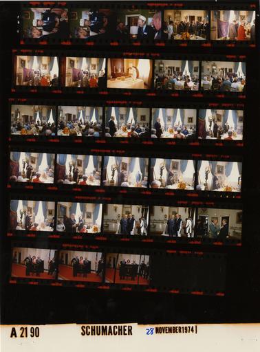 | Keywords: Ford A2190 NLGRF photo contact sheet (1974-11-28)(Gerald Ford Library).jpg White House Photographic Office WHPO is housed at the Gerald R Ford Presidential Library a branch of the National Archives and Records Administration NARA <br/><br/> This file is a 200 dpi photo contact sheet having images from roll of film A2190 of the August 9 1974 - January 20 1977 Gerald R Ford White House Photographic Office Series A0001-A9999 and B0001-B2886 photographs <br/><br/> The date on the photo contact sheet is the date the roll of film was processed not necessarily the date the photographs were taken See table below for additional details 1974-11-28 Gerald R Ford Presidential Library Image http //www fordlibrarymuseum gov/library/whphotos/A2190_NLGRF jpg A2190_NLGRF jpg from http //www fordlibrarymuseum gov/library/whphotos/19741128whpo pdf White House Photographs November 28 1974 of the http //www fordlibrarymuseum gov/Library/whphotos/whpo asp White House Photographic Collection page White House Photographic Office WHPO - Schumacher PD-USGov Institution Institution Gerald R Ford Presidential Library Table wikitable sortable + Photo contact sheet A2190 U S President Ford Administration Gerald R Ford Library Frame s Tone Subject proper Subject generic Names Geographic Location Photographer Date - 2-4 Color 1930 Grand Rapids South High School Football Team standing; GRF signing autograph wearing white baseball cap GRF 30-30 Club Member Green Room Schumacher 1974-11-28 - 5-8 Color Thanksgiving Brunch -1930 Grand Rapids South High School Football Team GRF standing near South High School banner GRF Silas Sikes McGee 30-30 Club Members Spouses Blue Room Schumacher 1974-11-28 - 9 Color Thanksgiving Brunch -1930 Grand Rapids South High School Football Team preparing dishes White House Chef Ground Floor Schumacher 1974-11-28 - 10-22 Color Thanksgiving Brunch -1930 Grand Rapids South High School Football Team GRF standing near South High School banner speaking - various angles and distances; all not in every frame GRF 30-30 Club Members Spouses Blue Room Schumacher 1974-11-28 - 23 Color Thanksgiving Brunch -1930 Grand Rapids South High School Football Team; Football Coach GRF standing near South High School banner Gettings carrying plaque GRF Cliff Gettings Blue Room Schumacher 1974-11-28 - 24-26 Color Thanksgiving Brunch -1930 Grand Rapids South High School Football Team standing posing -all not in every frame GRF 30-30 Club Members Blue Room Schumacher 1974-11-28 - 27-29 Color Member of 30-30 Club; 1930 Grand Rapids South High School Football Team - Boyhood friend of GRF standing posing behind Mt Pleasant Oilers banner GRF Art Brown Betty Ford Cross Hall Schumacher 1974-11-28 Gerald R Ford Presidential Library and Museum-cooperation PD-USGov Contact sheets by the Ford White House November 1974 |