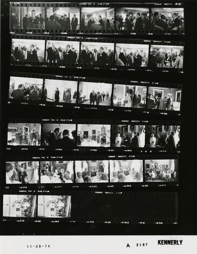 Keywords: Ford A2197 NLGRF photo contact sheet (1974-11-28)(Gerald Ford Library).jpg White House Photographic Office WHPO is housed at the Gerald R Ford Presidential Library a branch of the National Archives and Records Administration NARA <br/><br/> This file is a 200 dpi photo contact sheet having images from roll of film A2197 of the August 9 1974 - January 20 1977 Gerald R Ford White House Photographic Office Series A0001-A9999 and B0001-B2886 photographs <br/><br/> The date on the photo contact sheet is the date the roll of film was processed not necessarily the date the photographs were taken See table below for additional details 1974-11-28 Gerald R Ford Presidential Library Image http //www fordlibrarymuseum gov/library/whphotos/A2197_NLGRF jpg A2197_NLGRF jpg from http //www fordlibrarymuseum gov/library/whphotos/19741128whpo pdf White House Photographs November 28 1974 of the http //www fordlibrarymuseum gov/Library/whphotos/whpo asp White House Photographic Collection page White House Photographic Office WHPO <br/> Creator David Hume Kennerly PD-USGov Institution Institution Gerald R Ford Presidential Library Table wikitable sortable + Photo contact sheet A2197 U S President Ford Administration Gerald R Ford Library Frame s Tone Subject proper Subject generic Names Geographic Location Photographer Date - 2A BW Prior to Thanksgiving Brunch for the 30-30 Club - 1930 Grand Rapids South High School Football Team standing talking Musicians Entrance Hall/Grand Hall Kennerly 1974-11-28 - 3A-12A BW Members of 30-30 Club; 1930 Grand Rapids South High School Football Team - Boyhood friend of GRF - Football Coach standing talking mingling; all not in every frame GRF Art Brown Silas Sikes McGee Cliff Gettings Others Ground Floor -Diplomatic Reception Room Kennerly 1974-11-28 - 13A-14A BW Member of 30-30 Club; 1930 Grand Rapids South High School Football Team walking talking GRF Silas Sikes McGee Ground Floor -Hallway Kennerly 1974-11-28 - 15A-17A BW Member of 30-30 Club; 1930 Grand Rapids South High School Football Team walking talking - all not in every frame GRF Silas Sikes McGee 30-30 Club Members Spouses Green Room Kennerly 1974-11-28 - 18A-19A BW Prior to Thanksgiving Brunch - 1930 Grand Rapids South High School Football Team standing talking - all not in frame GRF 30-30 Club Members Spouses Blue Room Kennerly 1974-11-28 - 20A-21A BW Thanksgiving Brunch -1930 Grand Rapids South High School Football Team GRF and couple standing in front of South High School banner GRF 30-30 Club Members Spouses Blue Room Kennerly 1974-11-28 - 22A-28A BW Thanksgiving Brunch -1930 Grand Rapids South High School Football Team seated around tables eating -all not in every frame; various angles and distances GRF 30-30 Club Members Spouses Blue Room Kennerly 1974-11-28 Gerald R Ford Presidential Library and Museum-cooperation PD-USGov Contact sheets by the Ford White House November 1974 Photographs by David Hume Kennerly from 1974