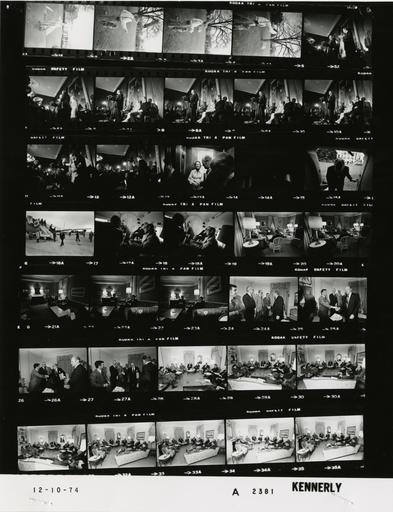 Keywords: Ford A2381 NLGRF photo contact sheet (1974-12-10)(Gerald Ford Library).jpg White House Photographic Office WHPO is housed at the Gerald R Ford Presidential Library a branch of the National Archives and Records Administration NARA <br/><br/> This file is a 200 dpi photo contact sheet having images from roll of film A2381 of the August 9 1974 - January 20 1977 Gerald R Ford White House Photographic Office Series A0001-A9999 and B0001-B2886 photographs <br/><br/> The date on the photo contact sheet is the date the roll of film was processed not necessarily the date the photographs were taken See table below for additional details 1974-12-10 Gerald R Ford Presidential Library Image http //www fordlibrarymuseum gov/library/whphotos/A2381_NLGRF jpg A2381_NLGRF jpg from http //www fordlibrarymuseum gov/library/whphotos/19741210whpo pdf White House Photographs December 10 1974 of the http //www fordlibrarymuseum gov/Library/whphotos/whpo asp White House Photographic Collection page White House Photographic Office WHPO <br/> Creator David Hume Kennerly PD-USGov Institution Institution Gerald R Ford Presidential Library Table wikitable sortable + Photo contact sheet A2381 U S President Ford Administration Gerald R Ford Library Frame s Tone Subject proper Subject generic Names Geographic Location Photographer Date - 1A-4A BW Pet Golden Retriever playing with dog on lawn -Oval Office and Colonnade in background Susan Ford Liberty South Lawn Kennerly 1974-12-10 - 5A-6A BW Portrait Unveiling Ceremony for Rep Mahon of Texas TX GRF at podium; others standing applauding GRF Rep Whitten; Rep Mrs Mahon Guests Washington DC United States Capitol -Sam Rayburn Room Kennerly 1974-12-10 - 7A-10A BW Portrait Unveiling Ceremony for Rep Mahon of Texas TX GRF at podium; others seated GRF Rep Whitten; Rep Mrs Mahon Guests Washington DC United States Capitol -Sam Rayburn Room Kennerly 1974-12-10 - 11A-12A BW Portrait Unveiling Ceremony for Rep Mahon of Texas TX standing near podium GRF Rep Whitten; Rep Mrs Mahon Guests Washington DC United States Capitol -Sam Rayburn Room Kennerly 1974-12-10 - 13A BW Following Portrait Unveiling Ceremony for Rep Mahon of Texas TX standing talking GRF Unidentified Woman Washington DC United States Capitol -Elevator Kennerly 1974-12-10 - 14A BW Kennerly 1974-12-10 - 15A BW Prior to Flight to Andrews Air Force Base boarding Marine One; White House in background -taken from inside helicopter GRF South Lawn Kennerly 1974-12-10 - 16A BW Arrival in New York for National Football Foundation and Hall of Fame Awards Dinner - New York City New York walking alone from plane -Air Force One in background GRF New York City NY Kennedy International Airport Kennerly 1974-12-10 - 17A-18A BW Flight from Kennedy International Airport to Wall Street Heliport - New York City New York seated talking - GRF and Burch in foreground GRF Burch Zarb Rumsfeld New York City NY Helicopter Kennerly 1974-12-10 - 19A-23A BW Vice President-Designate - New York City New York seated talking - various angles and distances; Rumsfeld in frames 19A-20A GRF Rockefeller New York City NY Waldorf Astoria Hotel - President's Suite Kennerly 1974-12-10 - 24A-27A BW Meeting with Members of the Commission on Critical Choices of America -New York City New York greeting handshaking -all not in every frame GRF Rockefeller Zarb Rumsfeld Areeda John Foster Edward teller Carroll Wilson George Woods William Ronan Hans Maks Oscar Reubhauser New York City NY Waldorf Astoria Hotel - Suite 7G Kennerly 1974-12-10 - 28A-35A BW Meeting with Members of the Commission on Critical Choices of America -New York City New York seated talking GRF Rockefeller Zarb Rumsfeld Areeda John Foster Edward teller Carroll Wilson George Woods William Ronan Hans Maks Oscar Reubhauser New York City NY Waldorf Astoria Hotel - Suite 7G Kennerly 1974-12-10 Gerald R Ford Presidential Library and Museum-cooperation PD-USGov Contact sheets by the Ford White House December 1974 Photographs by David Hume Kennerly from 1974 |