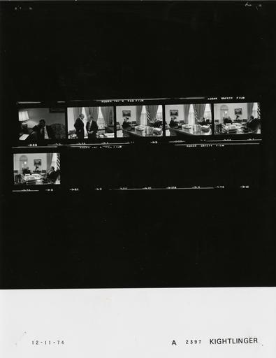 | Keywords: Ford A2397 NLGRF photo contact sheet (1974-12-11)(Gerald Ford Library).jpg White House Photographic Office WHPO is housed at the Gerald R Ford Presidential Library a branch of the National Archives and Records Administration NARA <br/><br/> This file is a 200 dpi photo contact sheet having images from roll of film A2397 of the August 9 1974 - January 20 1977 Gerald R Ford White House Photographic Office Series A0001-A9999 and B0001-B2886 photographs <br/><br/> The date on the photo contact sheet is the date the roll of film was processed not necessarily the date the photographs were taken See table below for additional details 1974-12-11 Gerald R Ford Presidential Library Image http //www fordlibrarymuseum gov/library/whphotos/A2397_NLGRF jpg A2397_NLGRF jpg from http //www fordlibrarymuseum gov/library/whphotos/19741211whpo pdf White House Photographs December 11 1974 of the http //www fordlibrarymuseum gov/Library/whphotos/whpo asp White House Photographic Collection page White House Photographic Office WHPO - Kightlinger PD-USGov Institution Institution Gerald R Ford Presidential Library Table wikitable sortable + Photo contact sheet A2397 U S President Ford Administration Gerald R Ford Library Frame s Tone Subject proper Subject generic Names Geographic Location Photographer Date - 2A BW seated Kightlinger Scheduling and Advance Office Kightlinger 1974-12-11 - 3A BW Chairman Hewlett Packard Manufacturing Company greeting handshaking GRF David Packard Oval Office Kightlinger 1974-12-11 - 4A-7A BW Chairman Hewlett Packard Manufacturing Company seated around desk - various angles GRF David Packard Oval Office Kightlinger 1974-12-11 Gerald R Ford Presidential Library and Museum-cooperation PD-USGov Contact sheets by the Ford White House December 1974 |