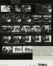 | Keywords: Ford A2419 NLGRF photo contact sheet (1974-12-12)(Gerald Ford Library).jpg White House Photographic Office WHPO is housed at the Gerald R Ford Presidential Library a branch of the National Archives and Records Administration NARA <br/><br/> This file is a 200 dpi photo contact sheet having images from roll of film A2419 of the August 9 1974 - January 20 1977 Gerald R Ford White House Photographic Office Series A0001-A9999 and B0001-B2886 photographs <br/><br/> The date on the photo contact sheet is the date the roll of film was processed not necessarily the date the photographs were taken See table below for additional details 1974-12-12 Gerald R Ford Presidential Library Image http //www fordlibrarymuseum gov/library/whphotos/A2419_NLGRF jpg A2419_NLGRF jpg from http //www fordlibrarymuseum gov/library/whphotos/19741212whpo pdf White House Photographs December 12 1974 of the http //www fordlibrarymuseum gov/Library/whphotos/whpo asp White House Photographic Collection page White House Photographic Office WHPO - Thomas PD-USGov Institution Institution Gerald R Ford Presidential Library Table wikitable sortable + Photo contact sheet A2419 U S President Ford Administration Gerald R Ford Library Frame s Tone Subject proper Subject generic Names Geographic Location Photographer Date - 3 BW seated talking on telephone Eisert White House Photo Office Thomas 1974-12-12 - 4-5 BW Date is not correct seated in first frame; GRF speaking at podium in second frame GRF Others Unidentified Location Thomas 1974-12-12 - 6 BW Thomas 1974-12-12 - 7-10 BW Breakfast Meeting With Michigan MI Republican Congressional Delegation seated at table; GRF speaking gesturing GRF Rep Garry Brown First Floor Family Dining Room Thomas 1974-12-12 - 11-16 BW Breakfast Meeting With Michigan MI Republican Congressional Delegation seated around table talking eating - all not in every frame; waiter Gene Allen serving in four frames GRF Sen Griffin Reps Esch Brown Hutchinson Chamberlain Vander Jagt Ruppe Huber Broomfield Cederberg; Marsh Friedersdorf First Floor Family Dining Room Thomas 1974-12-12 - 17 BW Breakfast Meeting With Michigan MI Republican Congressional Delegation standing talking GRF Rep Edward Hutchinson First Floor Family Dining Room Thomas 1974-12-12 - 18-22 BW Breakfast Meeting With Michigan MI Republican Congressional Delegation GRF leaning over signing photograph GRF Rep William Broomfield Others First Floor Family Dining Room Thomas 1974-12-12 - 23 BW Breakfast Meeting With Michigan MI Republican Congressional Delegation standing talking GRF Rep Edward Hutchinson Korologos First Floor Family Dining Room Thomas 1974-12-12 - 24-25 BW Following Breakfast Meeting With Michigan MI Republican Congressional Delegation talking walking towards Oval Office GRF Friedersdorf Marsh Colonnade Thomas 1974-12-12 Gerald R Ford Presidential Library and Museum-cooperation PD-USGov Contact sheets by the Ford White House December 1974 |