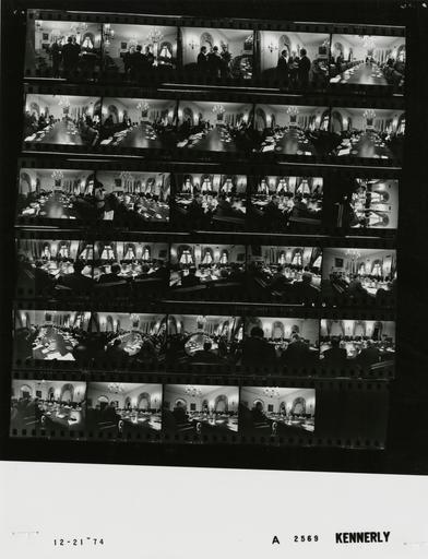 Keywords: Ford A2569 NLGRF photo contact sheet (1974-12-21)(Gerald Ford Library).jpg White House Photographic Office WHPO is housed at the Gerald R Ford Presidential Library a branch of the National Archives and Records Administration NARA <br/><br/> This file is a 200 dpi photo contact sheet having images from roll of film A2569 of the August 9 1974 - January 20 1977 Gerald R Ford White House Photographic Office Series A0001-A9999 and B0001-B2886 photographs <br/><br/> The date on the photo contact sheet is the date the roll of film was processed not necessarily the date the photographs were taken See table below for additional details 1974-12-21 Gerald R Ford Presidential Library Image http //www fordlibrarymuseum gov/library/whphotos/A2569_NLGRF jpg A2569_NLGRF jpg from http //www fordlibrarymuseum gov/library/whphotos/19741221whpo pdf White House Photographs December 21 1974 of the http //www fordlibrarymuseum gov/Library/whphotos/whpo asp White House Photographic Collection page White House Photographic Office WHPO <br/> Creator David Hume Kennerly PD-USGov Institution Institution Gerald R Ford Presidential Library Table wikitable sortable + Photo contact sheet A2569 U S President Ford Administration Gerald R Ford Library Frame s Tone Subject proper Subject generic Names Geographic Location Photographer Date - 2A-5A BW Prior to Economic Review Meeting standing talking - various angles; Simon in third frame making face Rockefeller Lynn Hushen Cabinet Room Kennerly 1974-12-21 - 6A-9A BW Prior to Economic Review Meeting - Director Council on Wage and Price Stability standing talking moving towards chairs around table -all not in every frame GRF Rockefeller Simon Greenspan Ash William Eberle Burns Lynn Albert Rees Cabinet Room Kennerly 1974-12-21 - 10A-30A BW Economic Review Meeting - Director Council on Wage and Price Stability seated around table talking - various angles and distances; all not in every frame GRF Rockefeller Simon Greenspan Ash William Eberle Burns Lynn Albert Rees Cabinet Room Kennerly 1974-12-21 Gerald R Ford Presidential Library and Museum-cooperation PD-USGov Contact sheets by the Ford White House December 1974 Photographs by David Hume Kennerly from 1974 |