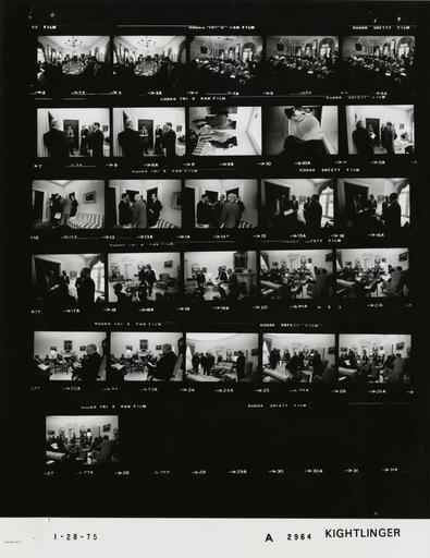Keywords: Ford A2964 NLGRF photo contact sheet (1975-01-28)(Gerald Ford Library).jpg White House Photographic Office WHPO is housed at the Gerald R Ford Presidential Library a branch of the National Archives and Records Administration NARA <br/><br/> This file is a 200 dpi photo contact sheet having images from roll of film A2964 of the August 9 1974 - January 20 1977 Gerald R Ford White House Photographic Office Series A0001-A9999 and B0001-B2886 photographs <br/><br/> The date on the photo contact sheet is the date the roll of film was processed not necessarily the date the photographs were taken See table below for additional details 1975-01-28 Gerald R Ford Presidential Library Image http //www fordlibrarymuseum gov/library/whphotos/A2964_NLGRF jpg A2964_NLGRF jpg from http //www fordlibrarymuseum gov/library/whphotos/19750128whpo pdf White House Photographs January 28 1975 of the http //www fordlibrarymuseum gov/Library/whphotos/whpo asp White House Photographic Collection page White House Photographic Office WHPO - Kightlinger PD-USGov Institution Institution Gerald R Ford Presidential Library Table wikitable sortable + Photo contact sheet A2964 U S President Ford Administration Gerald R Ford Library Frame s Tone Subject proper Subject generic Names Geographic Location Photographer Date - 2A-6A BW Bipartisan Congressional Leadership Meeting seated at table; all not in every frame GRF SenScott Mansfield Griffin Byrd Curtis Long Stennis Thurmond Sparkman McClellan Young; Reps Albert O'Neill Michel McFall Ullman Schneebeli Price Morgan Broomfield; Kissinger Simon Zarb Ash Cole Buchen Rumsfeld Hartmann Marsh Cabinet Room Kightlinger 1975-01-28 - 7A-17A BW Prior to Meeting on Economy Zarb Ash Burns Seidman Greenspan Scheduling and Advance Office Kightlinger 1975-01-28 - 18A-23A BW Meeting on Economy seated near fireplace GRF Zarb Ash Burns Seidman Greenspan Simon Oval Office Kightlinger 1975-01-28 - 24A-27A BW Meeting with Peruvian Conservationist; Winner of J Paul Getty Wildlife Conservation Prize seated near fireplace GRF Mr Mrs Felipe Benavides Fernando Berckemeyer S Dillon Ripley Amb Frank Kellogg Train Russell Peterson Goldwin Oval Office Kightlinger 1975-01-28 Gerald R Ford Presidential Library and Museum-cooperation PD-USGov Contact sheets by the Ford White House January 1975 |