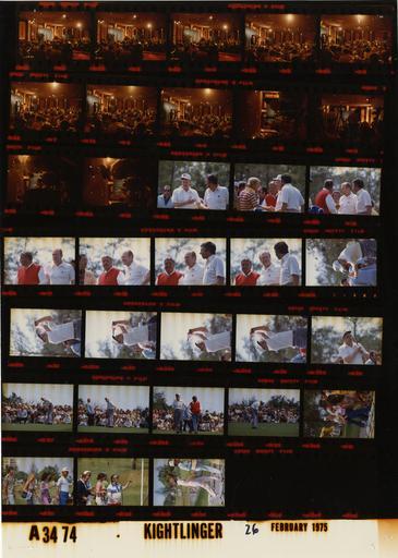 Keywords: Ford A3474 NLGRF photo contact sheet (1975-02-26)(Gerald Ford Library).jpg White House Photographic Office WHPO is housed at the Gerald R Ford Presidential Library a branch of the National Archives and Records Administration NARA <br/><br/> This file is a 200 dpi photo contact sheet having images from roll of film A3474 of the August 9 1974 - January 20 1977 Gerald R Ford White House Photographic Office Series A0001-A9999 and B0001-B2886 photographs <br/><br/> The date on the photo contact sheet is the date the roll of film was processed not necessarily the date the photographs were taken See table below for additional details 1975-02-26 Gerald R Ford Presidential Library Image http //www fordlibrarymuseum gov/library/whphotos/A3474_NLGRF jpg A3474_NLGRF jpg from http //www fordlibrarymuseum gov/library/whphotos/19750226whpo pdf White House Photographs February 26 1975 of the http //www fordlibrarymuseum gov/Library/whphotos/whpo asp White House Photographic Collection page White House Photographic Office WHPO - Kightlinger PD-USGov Institution Institution Gerald R Ford Presidential Library Table wikitable sortable + Photo contact sheet A3474 U S President Ford Administration Gerald R Ford Library Frame s Tone Subject proper Subject generic Names Geographic Location Photographer Date - 2-13 Color Trip to Florida - Press Conference - Fort Lauderdale Florida GRF at podium; various angles and distances GRF Media Fort Lauderdale FL Diplomat Hotel - Convention Hall Kightlinger 1975-02-26 - 14-30 Color Trip to Florida - Jackie Gleason Inverrary Classic Celebrities Golf Tournament - Hollywood Florida golf activities; all not in every frame; GRF swinging club in six frames; Jack Nicklaus in frame 16 GRF Jackie Gleason Others; Jack Nicklaus Hollywood FL Inverrary Country Club Kightlinger 1975-02-26 - 31-34 Color Trip to Florida - Jackie Gleason Inverrary Classic Celebrities Golf Tournament - Hollywood Florida watching golfers not seen ; various angles and distances; all not in every frame Crowd Hollywood FL Inverrary Country Club Kightlinger 1975-02-26 Gerald R Ford Presidential Library and Museum-cooperation PD-USGov Contact sheets by the Ford White House February 1975 |