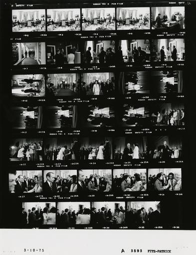 | Keywords: Ford A3593 NLGRF photo contact sheet (1975-03-10)(Gerald Ford Library).jpg White House Photographic Office WHPO is housed at the Gerald R Ford Presidential Library a branch of the National Archives and Records Administration NARA <br/><br/> This file is a 200 dpi photo contact sheet having images from roll of film A3593 of the August 9 1974 - January 20 1977 Gerald R Ford White House Photographic Office Series A0001-A9999 and B0001-B2886 photographs <br/><br/> The date on the photo contact sheet is the date the roll of film was processed not necessarily the date the photographs were taken See table below for additional details 1975-03-10 Gerald R Ford Presidential Library Image http //www fordlibrarymuseum gov/library/whphotos/A3593_NLGRF jpg A3593_NLGRF jpg from http //www fordlibrarymuseum gov/library/whphotos/19750310whpo pdf White House Photographs March 10 1975 of the http //www fordlibrarymuseum gov/Library/whphotos/whpo asp White House Photographic Collection page White House Photographic Office WHPO - Fitz-Patrick PD-USGov Institution Institution Gerald R Ford Presidential Library Table wikitable sortable + Photo contact sheet A3593 U S President Ford Administration Gerald R Ford Library Frame s Tone Subject proper Subject generic Names Geographic Location Photographer Date - 2-6 BW New York Times Photographer GRF seated others standing working around desk; Photographer George Tames frames 3-6 GRF Rumsfeld Marsh Hartmann Friedersdorf Nessen Oval Office Fitz-Patrick 1975-03-10 - 7 BW walking toward camera GRF O'Donnell Others Colonnade Fitz-Patrick 1975-03-10 - 8-12 BW Prior to Swearing in of Secretary of Housing and Urban Development standing talking; various angles; all not in every frame GRF Carla Hills Roderick Hills Sr Rockefeller Red Room Fitz-Patrick 1975-03-10 - 13-14 BW Prior to Swearing in of Secretary of Housing and Urban Development walking toward camera; walking toward East Room GRF Carla Hills Roderick Hills Sr Rockefeller Cross Hall Fitz-Patrick 1975-03-10 - 15-26 BW Swearing in of Secretary of Housing and Urban Development various angles and distances all not in every frame GRF Carla Hills Roderick Hills Sr ; Alison Laura Megan Rick Hills; Byron White Rockefeller Others East Room Fitz-Patrick 1975-03-10 - 27-35 BW Following Swearing in of Secretary of Housing and Urban Development mingling handshaking; all not in every frame GRF Carla Hills Roderick Hills Sr ; Alison Laura Megan Rick Hills; Justice Byron White Rockefeller; Lynn Connie Chung Tom Brokaw Others East Room Fitz-Patrick 1975-03-10 Gerald R Ford Presidential Library and Museum-cooperation PD-USGov Contact sheets by the Ford White House March 1975 |