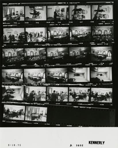 | Keywords: Ford A3602 NLGRF photo contact sheet (1975-03-10)(Gerald Ford Library).jpg White House Photographic Office WHPO is housed at the Gerald R Ford Presidential Library a branch of the National Archives and Records Administration NARA <br/><br/> This file is a 200 dpi photo contact sheet having images from roll of film A3602 of the August 9 1974 - January 20 1977 Gerald R Ford White House Photographic Office Series A0001-A9999 and B0001-B2886 photographs <br/><br/> The date on the photo contact sheet is the date the roll of film was processed not necessarily the date the photographs were taken See table below for additional details 1975-03-10 Gerald R Ford Presidential Library Image http //www fordlibrarymuseum gov/library/whphotos/A3602_NLGRF jpg A3602_NLGRF jpg from http //www fordlibrarymuseum gov/library/whphotos/19750310whpo pdf White House Photographs March 10 1975 of the http //www fordlibrarymuseum gov/Library/whphotos/whpo asp White House Photographic Collection page White House Photographic Office WHPO <br/> Creator David Hume Kennerly PD-USGov Institution Institution Gerald R Ford Presidential Library Table wikitable sortable + Photo contact sheet A3602 U S President Ford Administration Gerald R Ford Library Frame s Tone Subject proper Subject generic Names Geographic Location Photographer Date - 2-3 BW standing; leaning on side chair hand on hip in second frame GRF Oval Office Kennerly 1975-03-10 - 4-8 BW Miss America 1975 Entourage greeting handshaking standing talking; all not in every frame GRF Shirley Cothran Joseph Bradway Rep Ray Roberts Doris Kelly Oval Office Kennerly 1975-03-10 - 9-19 BW Meeting to Discuss Judicial Pay Raises seated around table; various angles and distances; all not in every frame GRF Warren Burger Lynn Sens Scott Mansfield; Reps Albert Rhodes; Levi Coleman Friedersdorf Buchen Marsh Rumsfeld Cabinet Room Kennerly 1975-03-10 - 20-21 BW walking into Oval Office; back to camera GRF Scheduling and Advance Office Kennerly 1975-03-10 - 22 BW entering Oval Office Rumsfeld Weinberger Scheduling and Advance Office Kennerly 1975-03-10 - 23-24 BW standing talking; GRF in background Rumsfeld Weinberger Unidentified Man Oval Office Kennerly 1975-03-10 - 25-28 BW seated around desk; Weinberger not in last frame GRF Rumsfeld Weinberger Oval Office Kennerly 1975-03-10 Gerald R Ford Presidential Library and Museum-cooperation PD-USGov Contact sheets by the Ford White House March 1975 Photographs by David Hume Kennerly from 1975 |