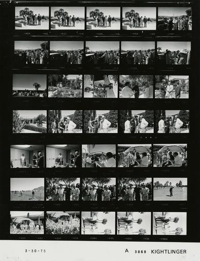 Keywords: Ford A3868 NLGRF photo contact sheet (1975-03-30)(Gerald Ford Library).jpg White House Photographic Office WHPO is housed at the Gerald R Ford Presidential Library a branch of the National Archives and Records Administration NARA <br/><br/> This file is a 200 dpi photo contact sheet having images from roll of film A3868 of the August 9 1974 - January 20 1977 Gerald R Ford White House Photographic Office Series A0001-A9999 and B0001-B2886 photographs <br/><br/> The date on the photo contact sheet is the date the roll of film was processed not necessarily the date the photographs were taken See table below for additional details 1975-03-30 Gerald R Ford Presidential Library Image http //www fordlibrarymuseum gov/library/whphotos/A3868_NLGRF jpg A3868_NLGRF jpg from http //www fordlibrarymuseum gov/library/whphotos/19750330whpo pdf White House Photographs March 30 1975 of the http //www fordlibrarymuseum gov/Library/whphotos/whpo asp White House Photographic Collection page White House Photographic Office WHPO - Kightlinger PD-USGov Institution Institution Gerald R Ford Presidential Library Table wikitable sortable + Photo contact sheet A3868 U S President Ford Administration Gerald R Ford Library Frame s Tone Subject proper Subject generic Names Geographic Location Photographer Date - 2A-5A BW Vacation Trip to California -Prior to Departure for Easter Sunday Worship Service - Palm Springs California standing posing GRF Betty Ford Mr Mrs Leon Parma Others Palm Springs CA Presidential Vacation Residence - Outside Kightlinger 1975-03-30 - 6A-12A BW Vacation Trip to California -Arrival for Easter Sunday Worship Service -Palm Springs California - Bishop of the Episcopal Diocese of San Diego California; Rector of St Margaret's Episcopal Church greeting near limousine; all not in every frame GRF Betty Ford Bishop Robert Wolferstorff Rev John Harrison Leon Parma Spouses Others Palm Springs CA St Margaret's Episcopal Church - Outside Kightlinger 1975-03-30 - 13A-17A BW Vacation Trip to California -Palm Springs California walking talking - all not in every frame GRF Betty Ford Mr Mrs Leon Parma Others Palm Springs CA Presidential Vacation Residence - Outside Kightlinger 1975-03-30 - 18A-21A BW Vacation Trip to California -Golf Foursome - La Quinta California - Chairman of the Executive Committee and Director of Avco Corporation and former football coach for the U S Military Academy West Point; Producer and Director of Motion Pictures standing talking; all not in every frame GRF Red Blaik Frank Capra Parma La Quinta CA La Quinta Country Club - Outside Kightlinger 1975-03-30 - 22A-23A BW Vacation Trip to California -Golf Foursome - La Quinta California - Chairman of the Executive Committee and Director of Avco Corporation and former football coach for the U S Military Academy West Point; Producer and Director of Motion Pictures standing talking GRF Red Blaik Frank Capra Parma La Quinta CA La Quinta Country Club - Clubhouse Kightlinger 1975-03-30 - 24A-26A BW Vacation Trip to California -Prior to Playing Round of Golf - La Quinta California seated in golf cart GRF Parma Others La Quinta CA La Quinta Country Club - Golf Cart Kightlinger 1975-03-30 - 27A BW Vacation Trip to California -Prior to Playing Round of Golf - La Quinta California at driving range GRF Others La Quinta CA La Quinta Country Club - Driving Range Kightlinger 1975-03-30 - 28A-30A BW Vacation Trip to California -Prior to Playing Round of Golf - La Quinta California standing posing GRF Parma Two Unidentified Men La Quinta CA La Quinta Country Club Kightlinger 1975-03-30 - 31A BW Vacation Trip to California -Playing Round of Golf - La Quinta California putting GRF La Quinta CA La Quinta Country Club Kightlinger 1975-03-30 - 32A-33A BW Vacation Trip to California -Playing Round of Golf - La Quinta California GRF Parma Others La Quinta CA La Quinta Country Club - Golf Cart Kightlinger 1975-03-30 - 34A-36A BW Vacation Trip to California -Playing Round of Golf - La Quinta California standing posing GRF Red Blaik Frank Capra Parma La Quinta CA La Quinta Country Club Kightlinger 1975-03-30 Gerald R Ford Presidential Library and Museum-cooperation PD-USGov Contact sheets by the Ford White House March 1975 La Quinta California Palm Springs California |