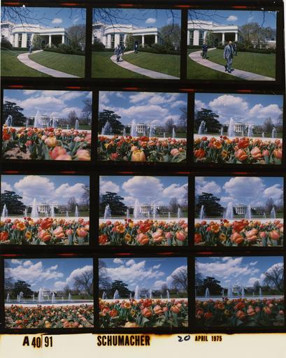 | Keywords: Ford A4091A NLGRF photo contact sheet (1975-04-20)(Gerald Ford Library).jpg White House Photographic Office WHPO is housed at the Gerald R Ford Presidential Library a branch of the National Archives and Records Administration NARA <br/><br/> This file is a 200 dpi photo contact sheet having images from roll of film A4091A of the August 9 1974 - January 20 1977 Gerald R Ford White House Photographic Office Series A0001-A9999 and B0001-B2886 photographs <br/><br/> The date on the photo contact sheet is the date the roll of film was processed not necessarily the date the photographs were taken See table below for additional details 1975-04-20 Gerald R Ford Presidential Library Image http //www fordlibrarymuseum gov/library/whphotos/A4091A_NLGRF jpg A4091A_NLGRF jpg from http //www fordlibrarymuseum gov/library/whphotos/19750420whpo pdf White House Photographs April 20 1975 of the http //www fordlibrarymuseum gov/Library/whphotos/whpo asp White House Photographic Collection page White House Photographic Office WHPO - Schumacher PD-USGov Institution Institution Gerald R Ford Presidential Library Table wikitable sortable + Photo contact sheet A4091A U S President Ford Administration Gerald R Ford Library Frame s Tone Subject proper Subject generic Names Geographic Location Photographer Date - 1A-3A Color Spring Portraits of White House walking toward camera GRF Sidewalk Between Oval Office and South Driveway Schumacher 1975-04-20 - 4A-12A Color Spring Portraits of White House White House in background; Fountain and tulip beds in foreground South Lawn Schumacher 1975-04-20 Gerald R Ford Presidential Library and Museum-cooperation PD-USGov Contact sheets by the Ford White House April 1975 White House in 1975 |