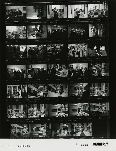 | Keywords: Ford A4106 NLGRF photo contact sheet (1975-04-18)(Gerald Ford Library).jpg White House Photographic Office WHPO is housed at the Gerald R Ford Presidential Library a branch of the National Archives and Records Administration NARA <br/><br/> This file is a 200 dpi photo contact sheet having images from roll of film A4106 of the August 9 1974 - January 20 1977 Gerald R Ford White House Photographic Office Series A0001-A9999 and B0001-B2886 photographs <br/><br/> The date on the photo contact sheet is the date the roll of film was processed not necessarily the date the photographs were taken See table below for additional details 1975-04-18 Gerald R Ford Presidential Library Image http //www fordlibrarymuseum gov/library/whphotos/A4106_NLGRF jpg A4106_NLGRF jpg from http //www fordlibrarymuseum gov/library/whphotos/19750418whpo pdf White House Photographs April 18 1975 of the http //www fordlibrarymuseum gov/Library/whphotos/whpo asp White House Photographic Collection page White House Photographic Office WHPO <br/> Creator David Hume Kennerly PD-USGov Institution Institution Gerald R Ford Presidential Library Table wikitable sortable + Photo contact sheet A4106 U S President Ford Administration Gerald R Ford Library Frame s Tone Subject proper Subject generic Names Geographic Location Photographer Date - 17A-20A BW Trip to Massachusetts - Prior to the Bicentennial Ceremony of the Hanging of Paul Revere's Two Lanterns - Boston Massachusetts greeting handshaking; all not in every frame GRF Others Boston MA Old North Church - Holding Room Kennerly 1975-04-18 - 21A-22A BW Trip to Massachusetts - Prior to the Bicentennial Ceremony of the Hanging of Paul Revere's Two Lanterns - Boston Massachusetts processional into church GRF Rev Robert Golledge Clergy Boston MA Old North Church Kennerly 1975-04-18 - 23A35A BW Trip to Massachusetts - Remarks during the Bicentennial Ceremony of the Hanging of Paul Revere's Two Lanterns - Boston Massachusetts GRF speaking from raised pulpit; various angles and distances GRF Crowd Boston MA Old North Church Kennerly 1975-04-18 - 2A-3A BW Trip to New Hampshire -Manchester New Hampshire standing talking; seated in second frame GRF Gov Thompson Manchester NH New Hampshire State House - Governor's Office Kennerly 1975-04-18 - 4A-5A BW Trip to New Hampshire -Manchester New Hampshire standing posing James Falk Four Unidentified Women Manchester NH New Hampshire State House Kennerly 1975-04-18 - 6A-7A BW Trip to New Hampshire -Manchester New Hampshire GRF walking waving GRF Crowd Manchester NH New Hampshire State House - Outside Kennerly 1975-04-18 - 8A-10A BW Trip to New Hampshire -White House Conference on Domestic and Economic Affairs - Manchester New Hampshire GRF entering room others applauding; GRF at podium in third frame GRF Baroody Others Crowd Manchester NH State Ballroom - Highway Hotel Kennerly 1975-04-18 - 11A-13A BW Trip to New Hampshire -Following White House Conference on Domestic and Economic Affairs - Manchester New Hampshire walking greeting handshaking GRF Others Manchester NH State Ballroom - Highway Hotel Kennerly 1975-04-18 - 14A BW Trip to New Hampshire -Following White House Conference on Domestic and Economic Affairs - Manchester New Hampshire talking near limousine; man has hand on GRF's shoulder GRF Unidentified Man Manchester NH Highway Hotel - Outside Kennerly 1975-04-18 - 15A BW Trip to New Hampshire -Prior to Flight to Boston Massachusetts -Concord Massachusetts GRF walking; taken from Marine One GRF Others Concord NH Concord Airport Kennerly 1975-04-18 - 16A BW Trip to Massachusetts - Arrival from Concord New Hampshire - Boston Massachusetts greeting handshaking GRF Mayor White Capt Frank Lessing Boston MA Unites States Coast Guard Station Kennerly 1975-04-18 Gerald R Ford Presidential Library and Museum-cooperation PD-USGov Contact sheets by the Ford White House April 1975 Photographs by David Hume Kennerly from 1975 |