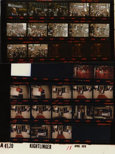 | Keywords: Ford A4120 NLGRF photo contact sheet (1975-04-18)(Gerald Ford Library).jpg White House Photographic Office WHPO is housed at the Gerald R Ford Presidential Library a branch of the National Archives and Records Administration NARA <br/><br/> This file is a 200 dpi photo contact sheet having images from roll of film A4120 of the August 9 1974 - January 20 1977 Gerald R Ford White House Photographic Office Series A0001-A9999 and B0001-B2886 photographs <br/><br/> The date on the photo contact sheet is the date the roll of film was processed not necessarily the date the photographs were taken See table below for additional details 1975-04-18 Gerald R Ford Presidential Library Image http //www fordlibrarymuseum gov/library/whphotos/A4120_NLGRF jpg A4120_NLGRF jpg from http //www fordlibrarymuseum gov/library/whphotos/19750418whpo pdf White House Photographs April 18 1975 of the http //www fordlibrarymuseum gov/Library/whphotos/whpo asp White House Photographic Collection page White House Photographic Office WHPO - Kightlinger PD-USGov Institution Institution Gerald R Ford Presidential Library Table wikitable sortable + Photo contact sheet A4120 U S President Ford Administration Gerald R Ford Library Frame s Tone Subject proper Subject generic Names Geographic Location Photographer Date - 3A-5A Color Trip to New Hampshire -Manchester New Hampshire holding microphone; McDonald's in background GRF Manchester NH Street Scene Kightlinger 1975-04-18 - 6A-14A Color Trip to New Hampshire -Manchester New Hampshire long shots; statue in center of several frames GRF Crowd Manchester NH Street Scene Kightlinger 1975-04-18 - 15A-17A Color Trip to New Hampshire -Speech Before a Joint Session of the New Hampshire State Legislature - Manchester New Hampshire GRF at podium; others behind; close up taken from balcony GRF Legislators Manchester NH New Hampshire State House - House Chamber Kightlinger 1975-04-18 - 18A-20A Color Kightlinger 1975-04-18 - 12A-22A Color Trip to Massachusetts - Bicentennial Ceremony of the Hanging of Paul Revere's Two Lanterns - Boston Massachusetts singing wearing robes Choir Boston MA Old North Church Kightlinger 1975-04-18 - 23A-24A Color Trip to Massachusetts - Remarks during the Bicentennial Ceremony of the Hanging of Paul Revere's Two Lanterns - Boston Massachusetts speaking from pulpit; close up GRF Boston MA Old North Church Kightlinger 1975-04-18 - 25A-35A Color Trip to Massachusetts - Bicentennial Ceremony of the Hanging of Paul Revere's Two Lanterns - Boston Massachusetts lighting third lantern to mark Third Century processing GRF Rev Robert Golledge Boston MA Old North Church Kightlinger 1975-04-18 Gerald R Ford Presidential Library and Museum-cooperation PD-USGov Contact sheets by the Ford White House April 1975 |