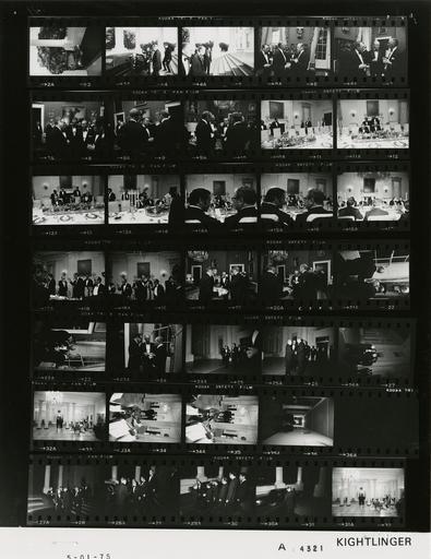 | Keywords: Ford A4321 NLGRF photo contact sheet (1975-05-01)(Gerald Ford Library).jpg White House Photographic Office WHPO is housed at the Gerald R Ford Presidential Library a branch of the National Archives and Records Administration NARA <br/><br/> This file is a 200 dpi photo contact sheet having images from roll of film A4321 of the August 9 1974 - January 20 1977 Gerald R Ford White House Photographic Office Series A0001-A9999 and B0001-B2886 photographs <br/><br/> The date on the photo contact sheet is the date the roll of film was processed not necessarily the date the photographs were taken See table below for additional details 1975-05-01 Gerald R Ford Presidential Library Image http //www fordlibrarymuseum gov/library/whphotos/A4321_NLGRF jpg A4321_NLGRF jpg from http //www fordlibrarymuseum gov/library/whphotos/19750501whpo pdf White House Photographs May 1 1975 of the http //www fordlibrarymuseum gov/Library/whphotos/whpo asp White House Photographic Collection page White House Photographic Office WHPO - Kightlinger PD-USGov Institution Institution Gerald R Ford Presidential Library Table wikitable sortable + Photo contact sheet A4321 U S President Ford Administration Gerald R Ford Library Frame s Tone Subject proper Subject generic Names Geographic Location Photographer Date - 2A BW Arrival of the Prime Minister of Tunisia limousine North Portico Kightlinger 1975-05-01 - 3A-4A BW Arrival of the Prime Minister of Tunisia for Stag Dinner greeting handshaking walking toward door - formal wear GRF Hedi Nouiri North Portico Kightlinger 1975-05-01 - 5A-9A BW Reception Prior to Stag Dinner for the Prime Minister of Tunisia standing talking; various angles and distances; all not in frames -formal wear GRF Hedi Nouiri Habib Chatti Ali Hedda Amb Seelye Alec Toumayan Others Red Room Kightlinger 1975-05-01 - 10A-13A BW Stag Dinner for the Prime Minister of Tunisia walking talking entering room; sitting last frame - formal wear GRF Hedi Nouiri Interpreter State Dining Room Kightlinger 1975-05-01 - 14A-16A BW Stag Dinner for the Prime Minister of Tunisia HAK and Man in foreground backs to camera; others seated at table; interpreter stooping in middle - formal wear GRF Hedi Nouiri Interpreter Kissinger Unidentified Man State Dining Room Kightlinger 1975-05-01 - 17A-18A BW Stag Dinner for the Prime Minister of Tunisia standing raising glasses - formal wear GRF Hedi Nouiri Others State Dining Room Kightlinger 1975-05-01 - 19A-23A BW Coffee Following Stag Dinner for the Prime Minister of Tunisia standing talking; various angles and distances; all not in frames -formal wear GRF Hedi Nouiri Habib Chatti Ali Hedda Amb Seelye Alec Toumayan Others Red Room Kightlinger 1975-05-01 - 24A-30A BW Departure of the Prime Minister of Tunisia Following Stag Dinner walking saying goodbye; all not in every frame - formal wear GRF Hedi Nouiri Kissinger Others North Portico Kightlinger 1975-05-01 - 31A-34A BW Following Stag Dinner for the Prime Minister of Tunisia standing talking; Musicians in foreground; various distances - formal wear GRF Kissinger Unidentified Man Cross Hall Kightlinger 1975-05-01 - 35A BW Following Stag Dinner for the Prime Minister of Tunisia walking backs to camera GRF Kissinger Unidentified Man White House Corridor Kightlinger 1975-05-01 Gerald R Ford Presidential Library and Museum-cooperation PD-USGov Contact sheets by the Ford White House May 1975 |