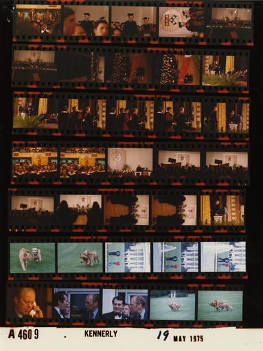 Keywords: Ford A4609 NLGRF photo contact sheet (1975-05-18)(Gerald Ford Library).jpg White House Photographic Office WHPO is housed at the Gerald R Ford Presidential Library a branch of the National Archives and Records Administration NARA <br/><br/> This file is a 200 dpi photo contact sheet having images from roll of film A4609 of the August 9 1974 - January 20 1977 Gerald R Ford White House Photographic Office Series A0001-A9999 and B0001-B2886 photographs <br/><br/> The date on the photo contact sheet is the date the roll of film was processed not necessarily the date the photographs were taken See table below for additional details 1975-05-18 Gerald R Ford Presidential Library Image http //www fordlibrarymuseum gov/library/whphotos/A4609_NLGRF jpg A4609_NLGRF jpg from http //www fordlibrarymuseum gov/library/whphotos/19750518whpo pdf White House Photographs May 18 1975 of the http //www fordlibrarymuseum gov/Library/whphotos/whpo asp White House Photographic Collection page White House Photographic Office WHPO <br/> Creator David Hume Kennerly PD-USGov Institution Institution Gerald R Ford Presidential Library Table wikitable sortable + Photo contact sheet A4609 U S President Ford Administration Gerald R Ford Library Frame s Tone Subject proper Subject generic Names Geographic Location Photographer Date - 18A-25A Color University of Pennsylvania Commencement - Philadelphia Pennsylvania GRF at podium speaking; various angles and distances; all not in every frame Platform Guests Crowd Philadelphia PA Philadelphia Civic Center Kennerly 1975-05-18 - 26A Color Trip to University of Pennsylvania - Philadelphia Pennsylvania talking on telephone GRF Philadelphia PA Philadelphia Civic Center - Holding Room Kennerly 1975-05-18 - 27A-28A Color Following Friends of Lubavitch Reception -Philadelphia Pennsylvania standing talking; man in formal wear GRF Unidentified Man Philadelphia PA Outside Philadelphia Marriott Motor Hotel Kennerly 1975-05-18 - 29A-32A Color Pet Golden Retrievers playing Liberty Misty South Lawn Kennerly 1975-05-18 - 33A-35A Color walking talking; fountain in foreground; White House in background GRF Steve Ford South Lawn Kennerly 1975-05-18 - 1A Color Kennerly 1975-05-18 - 2A-4A Color University of Pennsylvania Commencement - Philadelphia Pennsylvania walking wearing mortarboard; academic robe GRF Philadelphia PA Philadelphia Civic Center Kennerly 1975-05-18 - 5A-11A Color University of Pennsylvania Commencement - Philadelphia Pennsylvania various angles and distances; all not in every frame Platform Guests Crowd Philadelphia PA Philadelphia Civic Center Kennerly 1975-05-18 - 12A-15A Color University of Pennsylvania Commencement - Philadelphia Pennsylvania GRF receiving academic cowl; taken from stage left Platform Guests Crowd Philadelphia PA Philadelphia Civic Center Kennerly 1975-05-18 - 16A-17A Color University of Pennsylvania Commencement - Philadelphia Pennsylvania most seated; some standing holding Don't Tread on Me flag Crowd Philadelphia PA Philadelphia Civic Center Kennerly 1975-05-18 Gerald R Ford Presidential Library and Museum-cooperation PD-USGov Contact sheets by the Ford White House May 1975 Photographs by David Hume Kennerly from 1975 |