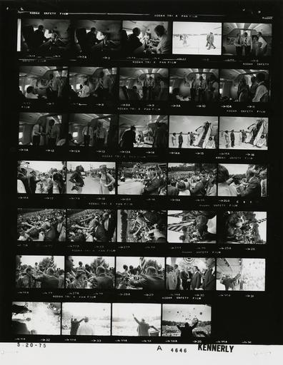 Keywords: Ford A4646 NLGRF photo contact sheet (1975-05-20)(Gerald Ford Library).jpg White House Photographic Office WHPO is housed at the Gerald R Ford Presidential Library a branch of the National Archives and Records Administration NARA <br/><br/> This file is a 200 dpi photo contact sheet having images from roll of film A4646 of the August 9 1974 - January 20 1977 Gerald R Ford White House Photographic Office Series A0001-A9999 and B0001-B2886 photographs <br/><br/> The date on the photo contact sheet is the date the roll of film was processed not necessarily the date the photographs were taken See table below for additional details 1975-05-20 Gerald R Ford Presidential Library Image http //www fordlibrarymuseum gov/library/whphotos/A4646_NLGRF jpg A4646_NLGRF jpg from http //www fordlibrarymuseum gov/library/whphotos/19750520whpo pdf White House Photographs May 20 1975 of the http //www fordlibrarymuseum gov/Library/whphotos/whpo asp White House Photographic Collection page White House Photographic Office WHPO <br/> Creator David Hume Kennerly PD-USGov Institution Institution Gerald R Ford Presidential Library Table wikitable sortable + Photo contact sheet A4646 U S President Ford Administration Gerald R Ford Library Frame s Tone Subject proper Subject generic Names Geographic Location Photographer Date - 1A-3A BW Flight to Andrews Air Force Base seated talking; others not in all frames GRF Susan Ford Others Marine One Kennerly 1975-05-20 - 4A BW Prior to Departure for North Carolina - Andrews Air Force Base Maryland walking across tarmac GRF Susan Ford Others Andrews Air Force Base MD Andrews Air Force Base Kennerly 1975-05-20 - 5A-13A BW Flight to North Carolina greeting handshaking standing talking; all not in every frame; Susan Ford in some frames GRF; Susan Ford Nessen; Others Air Force One Kennerly 1975-05-20 - 14A-15A BW Arrival in North Carolina - Charlotte North Carolina GRF descending steps from Air Force One GRF Others Charlotte NC Douglas Municipal Airport Kennerly 1975-05-20 - 16A-28A BW Mecklenburg County Bicentennial Celebration - Charlotte North Carolina greeting handshaking standing talking mingling; all not in every frame; Susan Ford and photographer in 2nd frame GRF Susan Ford Crowd Charlotte NC Freedom Park Kennerly 1975-05-20 - 29A BW Mecklenburg County Bicentennial Celebration - Charlotte North Carolina greeting handshaking; all not in frame GRF Platform Guests Charlotte NC Freedom Park Kennerly 1975-05-20 - 30A-34A BW Mecklenburg County Bicentennial Celebration - Charlotte North Carolina waving to crowd from podium; back to camera GRF Charlotte NC Freedom Park Kennerly 1975-05-20 Gerald R Ford Presidential Library and Museum-cooperation PD-USGov Contact sheets by the Ford White House May 1975 Photographs by David Hume Kennerly from 1975 |