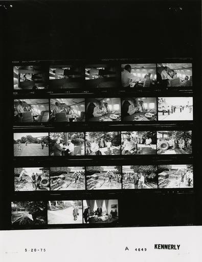 Keywords: Ford A4649 NLGRF photo contact sheet (1975-05-20)(Gerald Ford Library).jpg White House Photographic Office WHPO is housed at the Gerald R Ford Presidential Library a branch of the National Archives and Records Administration NARA <br/><br/> This file is a 200 dpi photo contact sheet having images from roll of film A4649 of the August 9 1974 - January 20 1977 Gerald R Ford White House Photographic Office Series A0001-A9999 and B0001-B2886 photographs <br/><br/> The date on the photo contact sheet is the date the roll of film was processed not necessarily the date the photographs were taken See table below for additional details 1975-05-20 Gerald R Ford Presidential Library Image http //www fordlibrarymuseum gov/library/whphotos/A4649_NLGRF jpg A4649_NLGRF jpg from http //www fordlibrarymuseum gov/library/whphotos/19750520whpo pdf White House Photographs May 20 1975 of the http //www fordlibrarymuseum gov/Library/whphotos/whpo asp White House Photographic Collection page White House Photographic Office WHPO <br/> Creator David Hume Kennerly PD-USGov Institution Institution Gerald R Ford Presidential Library Table wikitable sortable + Photo contact sheet A4649 U S President Ford Administration Gerald R Ford Library Frame s Tone Subject proper Subject generic Names Geographic Location Photographer Date - 2-4 BW Flight to Andrews Air Force Base From North Carolina standing in doorway between cabins talking; back to camera coatless GRF Air Force One Kennerly 1975-05-20 - 5-8 BW Flight to Andrews Air Force Base From North Carolina GRF standing smoking pipe; others seated; all not in every frame; Barrett in last frame GRF Reps Broyhill Andrews Air Force One Kennerly 1975-05-20 - 9-10 BW Flight to Andrews Air Force Base From North Carolina seated talking; GRF smoking pipe; coatless GRF Rep Broyhill Air Force One Kennerly 1975-05-20 - 11 BW Return From North Carolina - Andrews Air Force Base Maryland GRF descending steps from Air Force One GRF Air Force Personnel Andrews Air Force Base MD Andrews Air Force Base Kennerly 1975-05-20 - 12 BW Return From North Carolina walking across lawn; Marine One in background GRF Susan Ford Others South Lawn Kennerly 1975-05-20 - 13-22 BW White House Swimming Pool Construction talking looking at hole for swimming pool; all not in every frame GRF Susan Ford Construction Workers Others Swimming Pool Site - White House Grounds Kennerly 1975-05-20 - 23 BW walking backs to camera GRF Staff Sidewalk Between South Driveway and Oval Office Kennerly 1975-05-20 - 24 BW arranging desktop; Barrett in uniform GRF Barrett Oval Office Kennerly 1975-05-20 Gerald R Ford Presidential Library and Museum-cooperation PD-USGov Contact sheets by the Ford White House May 1975 Photographs by David Hume Kennerly from 1975 |
