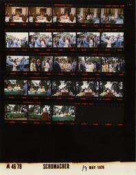 | Keywords: Ford A4678 NLGRF photo contact sheet (1975-05-19)(Gerald Ford Library).jpg White House Photographic Office WHPO is housed at the Gerald R Ford Presidential Library a branch of the National Archives and Records Administration NARA <br/><br/> This file is a 200 dpi photo contact sheet having images from roll of film A4678 of the August 9 1974 - January 20 1977 Gerald R Ford White House Photographic Office Series A0001-A9999 and B0001-B2886 photographs <br/><br/> The date on the photo contact sheet is the date the roll of film was processed not necessarily the date the photographs were taken See table below for additional details 1975-05-19 Gerald R Ford Presidential Library Image http //www fordlibrarymuseum gov/library/whphotos/A4678_NLGRF jpg A4678_NLGRF jpg from http //www fordlibrarymuseum gov/library/whphotos/19750519whpo pdf White House Photographs May 19 1975 of the http //www fordlibrarymuseum gov/Library/whphotos/whpo asp White House Photographic Collection page White House Photographic Office WHPO - Schumacher PD-USGov Institution Institution Gerald R Ford Presidential Library Table wikitable sortable + Photo contact sheet A4678 U S President Ford Administration Gerald R Ford Library Frame s Tone Subject proper Subject generic Names Geographic Location Photographer Date - 3-5 Color Trip to California -Private Dinner Hosted by Mr Mrs Robert Johns Clark - Los Angeles California seated around table; all not in frames Betty Ford Guests Los Angeles CA Presidential Suite - Beverly Hilton Hotel Schumacher 1975-05-19 - 6-7 Color Trip to California -Departure for Pepperdine University - Beverly Hills California BF waving; limousine in foreground Betty Ford Secret Service Others Beverly Hills CA Beverly Wilshire Hotel - Outside Schumacher 1975-05-20 - 8-19 Color Trip to California -Arrival for Foster Grandparent Program - Malibu California greeting handshaking walking to head table; all not in every frame Betty Ford Mrs Alison Gilbert James Wilber Dr Mrs Bill Banowsky Kenneth Hahn Mrs Kaye Bixby Others Malibu CA Pepperdine University Schumacher 1975-05-20 - 20-22 Color Trip to California -Foster Grandparent Program - Oldest Foster Grandparent - Malibu California BF standing with Williams at podium; all may not be in frames Betty Ford Mrs Alison Gilbert James Wilber Dr Mrs Bill Banowsky Kenneth Hahn Mrs Kaye Bixby Pearl Williams Others Malibu CA Pepperdine University Schumacher 1975-05-20 - 23-25 Color Trip to California -Foster Grandparent Program - Oldest Foster Grandparent - Malibu California BF and Williams seated listening to speaker; all may not be in frames Betty Ford Mrs Alison Gilbert James Wilber Dr Mrs Bill Banowsky Kenneth Hahn Mrs Kaye Bixby Pearl Williams Others Malibu CA Pepperdine University Schumacher 1975-05-20 Gerald R Ford Presidential Library and Museum-cooperation PD-USGov Contact sheets by the Ford White House May 1975 |