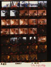 | Keywords: Ford A4851 NLGRF photo contact sheet (1975-06-01)(Gerald Ford Library).jpg White House Photographic Office WHPO is housed at the Gerald R Ford Presidential Library a branch of the National Archives and Records Administration NARA <br/><br/> This file is a 200 dpi photo contact sheet having images from roll of film A4851 of the August 9 1974 - January 20 1977 Gerald R Ford White House Photographic Office Series A0001-A9999 and B0001-B2886 photographs <br/><br/> The date on the photo contact sheet is the date the roll of film was processed not necessarily the date the photographs were taken See table below for additional details 1975-06-01 Gerald R Ford Presidential Library Image http //www fordlibrarymuseum gov/library/whphotos/A4851_NLGRF jpg A4851_NLGRF jpg from http //www fordlibrarymuseum gov/library/whphotos/19750601whpo pdf White House Photographs June 1 1975 of the http //www fordlibrarymuseum gov/Library/whphotos/whpo asp White House Photographic Collection page White House Photographic Office WHPO <br/> Creator David Hume Kennerly PD-USGov Institution Institution Gerald R Ford Presidential Library Table wikitable sortable + Photo contact sheet A4851 U S President Ford Administration Gerald R Ford Library Frame s Tone Subject proper Subject generic Names Geographic Location Photographer Date - 2-3 Color Trip to Austria - Arrival in Salzburg walking down steps of Air Force One; under umbrellas; GRF stumbling in second frame GRF Betty Ford Salzburg Austria Salzburg Airport Kennerly 1975-06-01 - 4-5 Color Trip to Austria - Arrival in Salzburg greeting handshaking; Air Force One in background in 2nd frame GRF Betty Ford Bruno Kreisky Others Salzburg Austria Salzburg Airport Kennerly 1975-06-01 - 6-8 Color Trip to Austria - Arrival in Salzburg GRF and boy greeting handshaking in first frame; all not in every frame; cow sculpture in all frames GRF Young Boy Kreisky Others Salzburg Austria Salzburg Airport Kennerly 1975-06-01 - 9-16 Color Trip to Austria - Meeting With Chancellor of Austria standing talking GRF Kreisky Salzburg Austria Sitting Room - Hotel Schloss Klessheim Kennerly 1975-06-01 - 17-22 Color Trip to Austria - Meeting With Chancellor of Austria seated talking GRF Kreisky Salzburg Austria Sitting Room - Hotel Schloss Klessheim Kennerly 1975-06-01 - 23-25 Color Trip to Austria - Departure of Chancellor of Austria handshaking saying goodbye; GRF and BF walking toward door in last frame GRF Betty Ford Bruno Kreisky Others Salzburg Austria Hotel Schloss Klessheim -Outside Kennerly 1975-06-01 - 26 Color Trip to Austria walking back toward camera GRF Salzburg Austria Sitting Room - Hotel Schloss Klessheim Kennerly 1975-06-01 - 27-35 Color Trip to Austria - Meeting with President of Egypt seated talking GRF Anwar Al-Sadat Salzburg Austria Hotel Schloss Fuschl Kennerly 1975-06-01 Gerald R Ford Presidential Library and Museum-cooperation PD-USGov Contact sheets by the Ford White House June 1975 Photographs by David Hume Kennerly from 1975 |