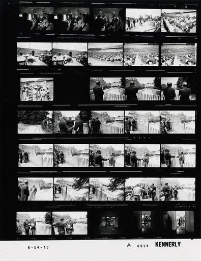 Keywords: Ford A4914 NLGRF photo contact sheet (1975-06-04)(Gerald Ford Library).jpg White House Photographic Office WHPO is housed at the Gerald R Ford Presidential Library a branch of the National Archives and Records Administration NARA <br/><br/> This file is a 200 dpi photo contact sheet having images from roll of film A4914 of the August 9 1974 - January 20 1977 Gerald R Ford White House Photographic Office Series A0001-A9999 and B0001-B2886 photographs <br/><br/> The date on the photo contact sheet is the date the roll of film was processed not necessarily the date the photographs were taken See table below for additional details 1975-06-04 Gerald R Ford Presidential Library Image http //www fordlibrarymuseum gov/library/whphotos/A4914_NLGRF jpg A4914_NLGRF jpg from http //www fordlibrarymuseum gov/library/whphotos/19750604whpo pdf White House Photographs June 4 1975 of the http //www fordlibrarymuseum gov/Library/whphotos/whpo asp White House Photographic Collection page White House Photographic Office WHPO <br/> Creator David Hume Kennerly PD-USGov Institution Institution Gerald R Ford Presidential Library Table wikitable sortable + Photo contact sheet A4914 U S President Ford Administration Gerald R Ford Library Frame s Tone Subject proper Subject generic Names Geographic Location Photographer Date - 3-5 BW Flight from Stewart Field New York to the United States Military Academy; US Senator from Maryland MD seated talking laughing; GRF's back to camera GRF Callaway Scowcroft Hartmann Cheney Sen Mathias Marine One Kennerly 1975-06-04 - 6 BW Arrival for U S Military Academy 1975 Commencement; Commandant; First Cadet; President of the 1975 Class - West Point New York greeting handshaking near limousine; all not in frame GRF Lt Gen Berry; Cadet James Abcouwer Cadet Robert Wesley Hayes; Others West Point NY United States Military Academy Kennerly 1975-06-04 - 7-12 BW U S Military Academy 1975 Commencement - West Point New York GRF at podium others seated; various angles and distances GRF Platform Guests Cadets Guests West Point NY United States Military Academy - Michie Stadium Kennerly 1975-06-04 - 13 BW U S Military Academy 1975 Commencement - West Point New York GRF in background handshaking; cadets in foreground walking up ramp to platform GRF Platform Guests Cadets West Point NY United States Military Academy - Michie Stadium Kennerly 1975-06-04 - 14 BW Kennerly 1975-06-04 - 15-34 BW White House Swimming Pool Construction; Director of Situation Room Fazio not in all frames; Steve Ford with GRF in one frame; handshaking with Fazio in frame 26 GRF Construction Workers Jim Fazio Others Swimming Pool Site - White House Grounds Kennerly 1975-06-04 - 35-37 BW Pet Golden Retriever standing talking; taken through open door of Oval Office dog GRF Steve Ford Liberty Colonnade Kennerly 1975-06-04 Gerald R Ford Presidential Library and Museum-cooperation PD-USGov Contact sheets by the Ford White House June 1975 Photographs by David Hume Kennerly from 1975 |
