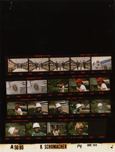 | Keywords: Ford A5080 NLGRF photo contact sheet (1975-06-14)(Gerald Ford Library).jpg White House Photographic Office WHPO is housed at the Gerald R Ford Presidential Library a branch of the National Archives and Records Administration NARA <br/><br/> This file is a 200 dpi photo contact sheet having images from roll of film A5080 of the August 9 1974 - January 20 1977 Gerald R Ford White House Photographic Office Series A0001-A9999 and B0001-B2886 photographs <br/><br/> The date on the photo contact sheet is the date the roll of film was processed not necessarily the date the photographs were taken See table below for additional details 1975-06-14 Gerald R Ford Presidential Library Image http //www fordlibrarymuseum gov/library/whphotos/A5080_NLGRF jpg A5080_NLGRF jpg from http //www fordlibrarymuseum gov/library/whphotos/19750614whpo pdf White House Photographs June 14 1975 of the http //www fordlibrarymuseum gov/Library/whphotos/whpo asp White House Photographic Collection page White House Photographic Office WHPO - Schumacher PD-USGov Institution Institution Gerald R Ford Presidential Library Table wikitable sortable + Photo contact sheet A5080 U S President Ford Administration Gerald R Ford Library Frame s Tone Subject proper Subject generic Names Geographic Location Photographer Date - 3A-6A Color Trip to Georgia - Prior to Departure for Andrews Air Force Base - Columbus Georgia walking past honor guard toward Air Force One not shown GRF Army Officers; Honor Guard Columbus GA Lawson Army Airfield Schumacher 1975-06-14 - 7A Color Trip to Georgia - Prior to Departure for Andrews Air Force Base - Columbus Georgia waving from top step near Air Force One door GRF Columbus GA Lawson Army Airfield Schumacher 1975-06-14 - 8A-9A Color Trip to Georgia - Prior to Departure for Andrews Air Force Base - Columbus Georgia Presidential Seal on side of Air Force One Columbus GA Lawson Army Airfield Schumacher 1975-06-14 - 10A-21A Color playing with water hose Unidentified Children Unidentified Location Schumacher 1975-06-14 Gerald R Ford Presidential Library and Museum-cooperation PD-USGov Contact sheets by the Ford White House June 1975 |