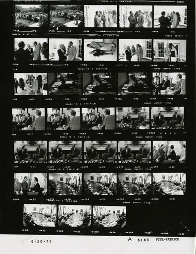 | Keywords: Ford A5143 NLGRF photo contact sheet (1975-06-18)(Gerald Ford Library).jpg White House Photographic Office WHPO is housed at the Gerald R Ford Presidential Library a branch of the National Archives and Records Administration NARA <br/><br/> This file is a 200 dpi photo contact sheet having images from roll of film A5143 of the August 9 1974 - January 20 1977 Gerald R Ford White House Photographic Office Series A0001-A9999 and B0001-B2886 photographs <br/><br/> The date on the photo contact sheet is the date the roll of film was processed not necessarily the date the photographs were taken See table below for additional details 1975-06-18 Gerald R Ford Presidential Library Image http //www fordlibrarymuseum gov/library/whphotos/A5143_NLGRF jpg A5143_NLGRF jpg from http //www fordlibrarymuseum gov/library/whphotos/19750618whpo pdf White House Photographs June 18 1975 of the http //www fordlibrarymuseum gov/Library/whphotos/whpo asp White House Photographic Collection page White House Photographic Office WHPO - Fitz-Patrick PD-USGov Institution Institution Gerald R Ford Presidential Library Table wikitable sortable + Photo contact sheet A5143 U S President Ford Administration Gerald R Ford Library Frame s Tone Subject proper Subject generic Names Geographic Location Photographer Date - 6-10 BW Father of Gerald Warren greeting handshaking standing talking GRF Hie Warren Colonnade Fitz-Patrick 1975-06-18 - 11-12 BW greeting handshaking standing talking; both not in each frame GRF Two Unidentified Women Colonnade Fitz-Patrick 1975-06-18 - 2-3 BW Visit With Participants at the National Teenage Republican Leadership Conference GRF at podium speaking; all not in every frame GRF Teenage Republicans Rose Garden Fitz-Patrick 1975-06-18 - 4-5 BW Former Limousine Driver greeting handshaking standing talking GRF Mr Frazier Colonnade Fitz-Patrick 1975-06-18 - 13-15 BW Press Briefing Regarding the President's Crime Message to Congress speaking at podium; medium range Levi Press Briefing Room Fitz-Patrick 1975-06-19 - 16-25 BW Governor of Iowa seated near fireplace; various angles GRF Gov Ray Oval Office Fitz-Patrick 1975-06-20 - 26-27 BW Prior to Ceremony to Receive the Final Report of the Commission on Revision of the Federal Court Appellate System greeting handshaking GRF Participant Cabinet Room Fitz-Patrick 1975-06-20 - 28-34 BW Ceremony to Receive the Final Report of the Commission on Revision of the Federal Court Appellate System seated around table; various angles and distances; all not in every frame GRF Sens Hruska Burdick Fong McClellan; Reps Brooks Hutchison Flowers Rodino; Edward Lumbard Emanuel Celler Roger Crampton Francis Kirkham Roger Robb; Warren Burger Leo Levin Arthur Hellman Arlene Fickler Levi Robert Bork; Others; Staff Cabinet Room Fitz-Patrick 1975-06-20 Gerald R Ford Presidential Library and Museum-cooperation PD-USGov Contact sheets by the Ford White House June 1975 |