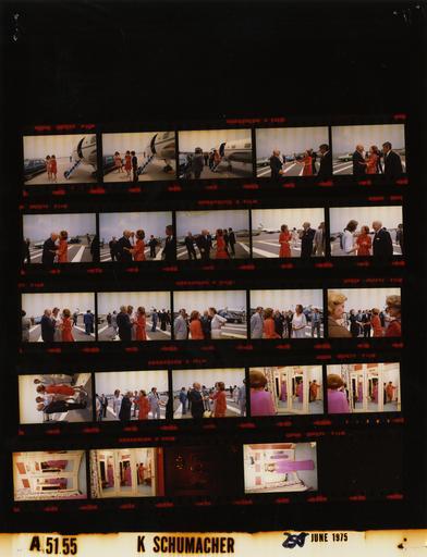 | Keywords: Ford A5155 NLGRF photo contact sheet (1975-06-19)(Gerald Ford Library).jpg White House Photographic Office WHPO is housed at the Gerald R Ford Presidential Library a branch of the National Archives and Records Administration NARA <br/><br/> This file is a 200 dpi photo contact sheet having images from roll of film A5155 of the August 9 1974 - January 20 1977 Gerald R Ford White House Photographic Office Series A0001-A9999 and B0001-B2886 photographs <br/><br/> The date on the photo contact sheet is the date the roll of film was processed not necessarily the date the photographs were taken See table below for additional details 1975-06-19 Gerald R Ford Presidential Library Image http //www fordlibrarymuseum gov/library/whphotos/A5155_NLGRF jpg A5155_NLGRF jpg from http //www fordlibrarymuseum gov/library/whphotos/19750619whpo pdf White House Photographs June 19 1975 of the http //www fordlibrarymuseum gov/Library/whphotos/whpo asp White House Photographic Collection page White House Photographic Office WHPO - Schumacher PD-USGov Institution Institution Gerald R Ford Presidential Library Table wikitable sortable + Photo contact sheet A5155 U S President Ford Administration Gerald R Ford Library Frame s Tone Subject proper Subject generic Names Geographic Location Photographer Date - 2-4 Color Trip to New York City New York stepping from Jetstar Aircraft Betty Ford Weidenfeld Others New York City NY LaGuardia Airport Schumacher 1975-06-19 - 5-19 Color Trip to New York City -Chance Meeting with President and First Lady of the Federal Republic of Germany - New York City New York greeting handshaking embracing; all not in every frame; BF wearing red dress with white polka dots Betty Ford President Mrs Walter Scheel; Catto Others New York City NY LaGuardia Airport Schumacher 1975-06-19 - 20-25 Color Trip to New York City -New York City New York standing in front of triple mirror; wearing fuschia gown; formal wear; 5th frame dark Betty Ford New York City NY Waldorf Astoria Hotel - Presidential Suite Dressing Room Schumacher 1975-06-19 Gerald R Ford Presidential Library and Museum-cooperation PD-USGov Contact sheets by the Ford White House June 1975 |