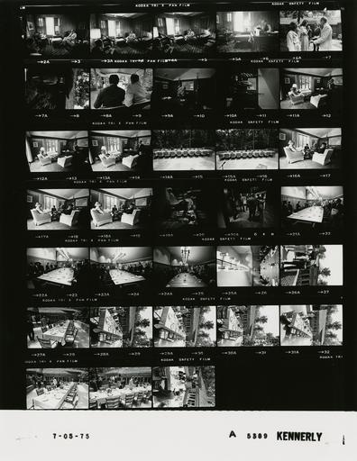 Keywords: Ford A5389 NLGRF photo contact sheet (1975-07-05)(Gerald Ford Library).jpg White House Photographic Office WHPO is housed at the Gerald R Ford Presidential Library a branch of the National Archives and Records Administration NARA <br/><br/> This file is a 200 dpi photo contact sheet having images from roll of film A5389 of the August 9 1974 - January 20 1977 Gerald R Ford White House Photographic Office Series A0001-A9999 and B0001-B2886 photographs <br/><br/> The date on the photo contact sheet is the date the roll of film was processed not necessarily the date the photographs were taken See table below for additional details 1975-07-05 Gerald R Ford Presidential Library Image http //www fordlibrarymuseum gov/library/whphotos/A5389_NLGRF jpg A5389_NLGRF jpg from http //www fordlibrarymuseum gov/library/whphotos/19750705whpo pdf White House Photographs July 5 1975 of the http //www fordlibrarymuseum gov/Library/whphotos/whpo asp White House Photographic Collection page White House Photographic Office WHPO <br/> Creator David Hume Kennerly PD-USGov Institution Institution Gerald R Ford Presidential Library Table wikitable sortable + Photo contact sheet A5389 U S President Ford Administration Gerald R Ford Library Frame s Tone Subject proper Subject generic Names Geographic Location Photographer Date - 2A-5A BW Trip to Camp David - Thurmont Maryland seated talking; various angles and distances; Scowcroft not in all frames GRF Kissinger Scowcroft Thurmont MD Camp David -Aspen Lodge - Office Kennerly 1975-07-05 - 6A BW Trip to Camp David - Thurmont Maryland standing talking near doorway GRF Betty Ford Sec Mrs Kissinger Thurmont MD Camp David -Outside Aspen Lodge Kennerly 1975-07-05 - 7A BW Trip to Camp David - Thurmont Maryland walking into Lodge; back to camera GRF Thurmont MD Camp David -Outside Aspen Lodge Kennerly 1975-07-05 - 8A BW Trip to Camp David - Thurmont Maryland riding in golf cart; backs to camera; close up GRF Kissinger Thurmont MD Camp David -Grounds Kennerly 1975-07-05 - 9A-10A BW Trip to Camp David - Thurmont Maryland standing behind desk; 2 flags in background GRF Thurmont MD Camp David -Laurel Lodge - Office Kennerly 1975-07-05 - 11A-13A BW Trip to Camp David - Thurmont Maryland talking; GRF seated in easy chair; Scowcroft standing; holding documents under arm GRF Scowcroft Thurmont MD Camp David -Laurel Lodge - Office Kennerly 1975-07-05 - 14A-15A BW Trip to Camp David - Prior to Talks With the President of the Republic of Indonesia - Thurmont Maryland setting long table for meeting Naval Stewards Thurmont MD Camp David -Laurel Lodge - Patio Kennerly 1975-07-05 - 16A-18A BW Trip to Camp David - Private Talks With the President Suharto and Economic Minister of the Republic of Indonesia - Thurmont Maryland seated in easy chairs talking GRF Suharto; Widjojo Nitisastro Scowcroft Thurmont MD Camp David -Laurel Lodge - Office Kennerly 1975-07-05 - 19A-20A BW Trip to Camp David - Prior to Formal Talks With the President of the Republic of Indonesia - Thurmont Maryland standing talking GRF Staff Thurmont MD Camp David -Laurel Lodge Kennerly 1975-07-05 - 21A-25A BW Trip to Camp David - Prior to Formal Talks With the President of the Republic of Indonesia - Thurmont Maryland standing talking around large table GRF President Suharto; Widjojo Nitisastro Scowcroft; White House Staff; Indonesian Staff Thurmont MD Camp David -Laurel Lodge - Meeting Room Kennerly 1975-07-05 - 26A BW Trip to Camp David - Meeting With the President of the Republic of Indonesia - Thurmont Maryland standing talking away from others GRF President Suharto Thurmont MD Camp David -Laurel Lodge - Patio Kennerly 1975-07-05 - 27A-34A BW Trip to Camp David - Prior to Working Luncheon With the President of the Republic of Indonesia - Thurmont Maryland standing talking; luncheon table in foreground; others moving around in last 3 frames GRF President Suharto Thurmont MD Camp David -Laurel Lodge - Patio Kennerly 1975-07-05 Gerald R Ford Presidential Library and Museum-cooperation PD-USGov Contact sheets by the Ford White House July 1975 Photographs by David Hume Kennerly from 1975 |