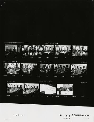 | Keywords: Ford A5412 NLGRF photo contact sheet (1975-07-07)(Gerald Ford Library).jpg  White House Photographic Office WHPO is housed at the Gerald R Ford Presidential Library a branch of the National Archives and Records Administration NARA <br/><br/> This file is a 200 dpi photo contact sheet having images from roll of film A5412 of the August 9 1974 - January 20 1977 Gerald R Ford White House Photographic Office Series A0001-A9999 and B0001-B2886 photographs <br/><br/> The date on the photo contact sheet is the date the roll of film was processed not necessarily the date the photographs were taken See table below for additional details 1975-07-07 Gerald R Ford Presidential Library Image http //www fordlibrarymuseum gov/library/whphotos/A5412_NLGRF jpg A5412_NLGRF jpg from http //www fordlibrarymuseum gov/library/whphotos/19750707whpo pdf White House Photographs July 7 1975 of the http //www fordlibrarymuseum gov/Library/whphotos/whpo asp White House Photographic Collection page White House Photographic Office WHPO - Schumacher PD-USGov Institution Institution Gerald R Ford Presidential Library Table wikitable sortable + Photo contact sheet A5412 U S President Ford Administration Gerald R Ford Library Frame s Tone Subject proper Subject generic Names Geographic Location Photographer Date - 9-20 BW Meeting With Governors Regarding Highway Message Signing Ceremony greeting handshaking; seated around table; various angles and distances; all not in frames GRF Govs Ray Rampton Moore O'Callaghan Bennett; Coleman Theodore Lutz Joseph Coupal Cannon Falk Raoul-Duval Nessen Friedersdorf Cabinet Room Schumacher 1975-07-07 - 21 BW in pool GRF Swimming Pool - White House Grounds Schumacher 1975-07-07 - 22 BW standing on pool edge talking; GRF in housecoat; OEOB in background GRF Unidentified Man Swimming Pool - White House Grounds Schumacher 1975-07-07 Gerald R Ford Presidential Library and Museum-cooperation PD-USGov Contact sheets by the Ford White House July 1975 |