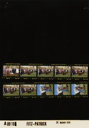 | Keywords: Ford A8918 NLGRF photo contact sheet (1976-03-23)(Gerald Ford Library).jpg White House Photographic Office WHPO is housed at the Gerald R Ford Presidential Library a branch of the National Archives and Records Administration NARA <br/><br/> This file is a 200 dpi photo contact sheet having images from roll of film A8918 of the August 9 1974 - January 20 1977 Gerald R Ford White House Photographic Office Series A0001-A9999 and B0001-B2886 photographs <br/><br/> The date on the photo contact sheet is the date the roll of film was processed not necessarily the date the photographs were taken See table below for additional details 1976-03-23 Gerald R Ford Presidential Library Image http //www fordlibrarymuseum gov/library/whphotos/A8918_NLGRF jpg A8918_NLGRF jpg from http //www fordlibrarymuseum gov/library/whphotos/19760323whpo pdf White House Photographs March 23 1976 of the http //www fordlibrarymuseum gov/Library/whphotos/whpo asp White House Photographic Collection page White House Photographic Office WHPO - Fitz-Patrick PD-USGov Institution Institution Gerald R Ford Presidential Library Table wikitable sortable + Photo contact sheet A8918 U S President Ford Administration Gerald R Ford Library Frame s Tone Subject proper Subject generic Names Geographic Location Photographer Date - 1-7 Color Signing Ceremony for H R 8835 Truth in Leasing Bill and H R 6516 Equal Credit Opportunity Act; Members of Senate House Committee on Banking Housing and Urban Affairs; US Representatives US Senators GRF seated at table making remarks signing GRF Sens Biden Garn; Reps Annunzio AuCoin Blanchard Derrick Evans Fauntroy Hansen Hyde Kelly LaFalce Minish Neal Patterson Rees Schulze Spellman Stephens Wylie; Abshire Buckley Cluff Rohner Jewel l Doremus Fink McMahon Northup Prins Rose Garden Fitz-Patrick 1976-03-23 - 8-10 Color Unidentified White House Visitors standing on grass blue jeans; White House in background Unidentified Couple South Lawn Fitz-Patrick 1976-03-23 Gerald R Ford Presidential Library and Museum-cooperation PD-USGov Contact sheets by the Ford White House March 1976 |