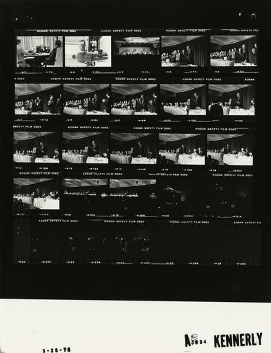Keywords: Ford A8934 NLGRF photo contact sheet (1976-03-24)(Gerald Ford Library).jpg White House Photographic Office WHPO is housed at the Gerald R Ford Presidential Library a branch of the National Archives and Records Administration NARA <br/><br/> This file is a 200 dpi photo contact sheet having images from roll of film A8934 of the August 9 1974 - January 20 1977 Gerald R Ford White House Photographic Office Series A0001-A9999 and B0001-B2886 photographs <br/><br/> The date on the photo contact sheet is the date the roll of film was processed not necessarily the date the photographs were taken See table below for additional details 1976-03-24 Gerald R Ford Presidential Library Image http //www fordlibrarymuseum gov/library/whphotos/A8934_NLGRF jpg A8934_NLGRF jpg from http //www fordlibrarymuseum gov/library/whphotos/19760324whpo pdf White House Photographs March 24 1976 of the http //www fordlibrarymuseum gov/Library/whphotos/whpo asp White House Photographic Collection page White House Photographic Office WHPO <br/> Creator David Hume Kennerly PD-USGov Institution Institution Gerald R Ford Presidential Library Table wikitable sortable + Photo contact sheet A8934 U S President Ford Administration Gerald R Ford Library Frame s Tone Subject proper Subject generic Names Geographic Location Photographer Date - 2A BW Meeting with Secretary of Defense Secretary of State Chrm of Joint Chiefs of Staff Dir US Arms Control and Disarmament Agency National Security Adviser and Chief of Staff camera on GRF at desk listening seriously GRF; Rumsfeld Kissinger Oval Office Kennerly 1976-03-24 - 3A BW GRF seated at desk smiling GRF; Unidentified Man Oval Office Kennerly 1976-03-24 - 4A BW Radio and Television Correspondents Dinner-Entertainment by Up with People performing on stage; formal wear Up with People Washington DC Washington Hilton Hotel Kennerly 1976-03-24 - 5A-19A BW Radio and Television Correspondents Dinner-Remarks GRF at podium; head table guests seated to GRF's right; Greenwood to GRF's left; all may not be shown; formal wear GRF Sevilla-Sacasa Sam Donaldson Rumsfeld Paul Duke Mathews Ed Little Sen Mansfield Maryka McLaughlin Sen Pearson Wm Sheehan Sen Humphrey Carpenter Rep Devine Schlosser Middendorf Keith Fuller Richard Wiley Chas VanDyke Wasilewski;Greenwood Washington DC Washington Hilton Hotel Kennerly 1976-03-24 - 20A-24A BW Radio and Television Correspondents Dinner departing; formal wear GRF Betty Ford Washington Hilton Hotel Kennerly 1976-03-24 Gerald R Ford Presidential Library and Museum-cooperation PD-USGov Contact sheets by the Ford White House March 1976 Photographs by David Hume Kennerly from 1976 |