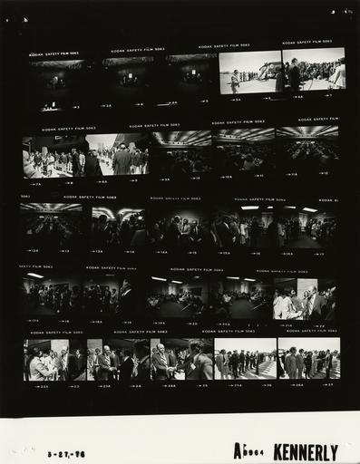 | Keywords: Ford A8964 NLGRF photo contact sheet (1976-03-27)(Gerald Ford Library).jpg White House Photographic Office WHPO is housed at the Gerald R Ford Presidential Library a branch of the National Archives and Records Administration NARA <br/><br/> This file is a 200 dpi photo contact sheet having images from roll of film A8964 of the August 9 1974 - January 20 1977 Gerald R Ford White House Photographic Office Series A0001-A9999 and B0001-B2886 photographs <br/><br/> The date on the photo contact sheet is the date the roll of film was processed not necessarily the date the photographs were taken See table below for additional details 1976-03-27 Gerald R Ford Presidential Library Image http //www fordlibrarymuseum gov/library/whphotos/A8964_NLGRF jpg A8964_NLGRF jpg from http //www fordlibrarymuseum gov/library/whphotos/19760327whpo pdf White House Photographs March 27 1976 of the http //www fordlibrarymuseum gov/Library/whphotos/whpo asp White House Photographic Collection page White House Photographic Office WHPO <br/> Creator David Hume Kennerly PD-USGov Institution Institution Gerald R Ford Presidential Library Table wikitable sortable + Photo contact sheet A8964 U S President Ford Administration Gerald R Ford Library Frame s Tone Subject proper Subject generic Names Geographic Location Photographer Date - 2A-4A BW Campaign Trip to California; Interview with KABC-TV Correspondent seated before interview long shot dark room GRF Jerry Dunphy Los Angeles CA Century Plaza Hotel - Brentwood Room Kennerly 1976-03-27 - 5A BW Campaign Trip to California; Airport Arrival GRF waving at top of Air Force One ramp others assembled below GRF Rep Alphonzo Bell Mr Mrs Paul Haerle; Mr Mrs Ben Ewell Mr Mrs Richard Brinker Wilmer Garrett Fresno CA Fresno Airport Kennerly 1976-03-27 - 6A BW Campaign Trip to California; Airport Arrival; Press Q A - Fresno California GRF speaks to press behind rope GRF Media Fresno CA Fresno Airport Kennerly 1976-03-27 - 7A-8A BW Campaign Trip to California-California Republican State Central Committee Luncheon-Arriving for GRF watching song and dance of group; outdoors GRF Unidentified Group Fresno CA Fresno Convention Center Kennerly 1976-03-27 - 9A-13A BW Campaign Trip to California-California Republican State Central Committee Luncheon-Remarks audience in foreground GRF at podium and seated platform guests in background; long shot of dark room departing GRF Audience Fresno CA Fresno Convention Center Kennerly 1976-03-27 - 14A-20A BW Campaign Trip to California; Meeting with California Republican and PFC Leaders; President Ford Committee standing seated around room; various angles and distances; all not in every frame; Cheney using crutch GRF Paul Haerle Charles Reed Dennis Carpenter Paul Priolo Evelle Younger Rep Rousselot Burgener Bell; R Ferraro A Ogel B Ewell S Brinker Leon Parma Charles Bakaly Rita Ashcraft Marie Solberg Sid Chapin; Cheney Fresno CA Fresno Convention Center-Conference Room Kennerly 1976-03-27 - 21A-24A BW Campaign Trip to California-Meeting with California Republican and President Ford Committee PFC Leaders-departing from outdoors; standing handshaking; various angles and distances; all not in every frame GRF Staff Fresno CA Fresno Convention Center-Conference Room Kennerly 1976-03-27 - 25A-26A BW Campaign Trip to California; Airport Departure - Fresno California handshaking on tarmac GRF Police Officers Others Fresno CA Fresno Airport Kennerly 1976-03-27 Gerald R Ford Presidential Library and Museum-cooperation PD-USGov Contact sheets by the Ford White House March 1976 Photographs by David Hume Kennerly from 1976 |