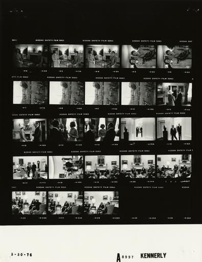Keywords: Ford A8997 NLGRF photo contact sheet (1976-03-30)(Gerald Ford Library).jpg White House Photographic Office WHPO is housed at the Gerald R Ford Presidential Library a branch of the National Archives and Records Administration NARA <br/><br/> This file is a 200 dpi photo contact sheet having images from roll of film A8997 of the August 9 1974 - January 20 1977 Gerald R Ford White House Photographic Office Series A0001-A9999 and B0001-B2886 photographs <br/><br/> The date on the photo contact sheet is the date the roll of film was processed not necessarily the date the photographs were taken See table below for additional details 1976-03-30 Gerald R Ford Presidential Library Image http //www fordlibrarymuseum gov/library/whphotos/A8997_NLGRF jpg A8997_NLGRF jpg from http //www fordlibrarymuseum gov/library/whphotos/19760330whpo pdf White House Photographs March 30 1976 of the http //www fordlibrarymuseum gov/Library/whphotos/whpo asp White House Photographic Collection page White House Photographic Office WHPO <br/> Creator David Hume Kennerly PD-USGov Institution Institution Gerald R Ford Presidential Library Table wikitable sortable + Photo contact sheet A8997 U S President Ford Administration Gerald R Ford Library Frame s Tone Subject proper Subject generic Names Geographic Location Photographer Date - 2-6 BW State Visit of Jordan's King Hussein I and Queen Alia-Arrival Ceremony-prior to standing together staff holding roses for Queen Alia Betty Unidentified Staff Woman Diplomatic Reception Room Kennerly 1976-03-30 - 7-10 BW State Visit of Jordan's King Hussein I and Queen Alia-Arrival Ceremony-Remarks long shots standing on platform; GRF making remarks; descending steps; taken from Blue Room Balcony GRF King Hussein Honor Guard Crowd South Lawn Kennerly 1976-03-30 - 11-14 BW State Visit of Jordan's King Hussein I and Queen Alia-Arrival Reception standing in groups talking; all not in every frame GRF Queen Alia; King Hussein Betty Ford Kissinger Blue Room Kennerly 1976-03-30 - 15-24 BW State Visit of Jordan's King Hussein I and Queen Alia-Oval Office Meeting; Minister of Foreign Affairs and Defense Al-Rifa GRF Hussein entering room; all seated in chairs by fireplace and sofa GRF King Hussein; Prime Minister Zayd al-Rifa; Amb Thomas Pickering; Kissinger Oval Office Kennerly 1976-03-30 Gerald R Ford Presidential Library and Museum-cooperation PD-USGov Contact sheets by the Ford White House March 1976 Photographs by David Hume Kennerly from 1976 |