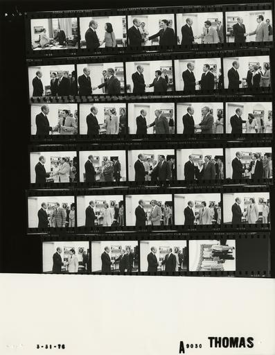 | Keywords: Ford A9030 NLGRF photo contact sheet (1976-03-31)(Gerald Ford Library).jpg White House Photographic Office WHPO is housed at the Gerald R Ford Presidential Library a branch of the National Archives and Records Administration NARA <br/><br/> This file is a 200 dpi photo contact sheet having images from roll of film A9030 of the August 9 1974 - January 20 1977 Gerald R Ford White House Photographic Office Series A0001-A9999 and B0001-B2886 photographs <br/><br/> The date on the photo contact sheet is the date the roll of film was processed not necessarily the date the photographs were taken See table below for additional details 1976-03-31 Gerald R Ford Presidential Library Image http //www fordlibrarymuseum gov/library/whphotos/A9030_NLGRF jpg A9030_NLGRF jpg from http //www fordlibrarymuseum gov/library/whphotos/19760331whpo pdf White House Photographs March 31 1976 of the http //www fordlibrarymuseum gov/Library/whphotos/whpo asp White House Photographic Collection page White House Photographic Office WHPO - Thomas PD-USGov Institution Institution Gerald R Ford Presidential Library Table wikitable sortable + Photo contact sheet A9030 U S President Ford Administration Gerald R Ford Library Frame s Tone Subject proper Subject generic Names Geographic Location Photographer Date - 3A-31A BW Meeting with Guests of Peter Secchia Visiting Washington for the Republican Senate-House Dinner; Secchia Pres Universal Forest Products Grand Rapids Michigan handshaking; individual photo ops; Secchia 1 31; Hauenstein 11A; various angles and distances; all not in every frame GRF Carmichael T Corson; Mr Mrs Secchia; P Cook L Davenport Decio Deitch;D Eberhardt D Gezon D Gilc hirst C Hagaman R Hauenstein M J acobson R Johnson J Kahl R Kaplan G Kennedy G Lee Loria Merta W Mitchell J Morris D Mossey A Nickl e L Saylor Zeitz Oval Office Thomas 1976-03-31 Gerald R Ford Presidential Library and Museum-cooperation PD-USGov Contact sheets by the Ford White House March 1976 |