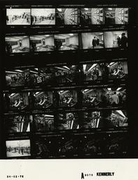 | Keywords: Ford A9079 NLGRF photo contact sheet (1976-04-03)(Gerald Ford Library).jpg White House Photographic Office WHPO is housed at the Gerald R Ford Presidential Library a branch of the National Archives and Records Administration NARA <br/><br/> This file is a 200 dpi photo contact sheet having images from roll of film A9079 of the August 9 1974 - January 20 1977 Gerald R Ford White House Photographic Office Series A0001-A9999 and B0001-B2886 photographs <br/><br/> The date on the photo contact sheet is the date the roll of film was processed not necessarily the date the photographs were taken See table below for additional details 1976-04-03 Gerald R Ford Presidential Library Image http //www fordlibrarymuseum gov/library/whphotos/A9079_NLGRF jpg A9079_NLGRF jpg from http //www fordlibrarymuseum gov/library/whphotos/19760403whpo pdf White House Photographs April 3 1976 of the http //www fordlibrarymuseum gov/Library/whphotos/whpo asp White House Photographic Collection page White House Photographic Office WHPO <br/> Creator David Hume Kennerly PD-USGov Institution Institution Gerald R Ford Presidential Library Table wikitable sortable + Photo contact sheet A9079 U S President Ford Administration Gerald R Ford Library Frame s Tone Subject proper Subject generic Names Geographic Location Photographer Date - 1A-2A BW Campaign Trip to Wisconsin; Airport Arrival GRF descending steps of plane handshaking with welcoming elected and PFC officials GRF Donald Holloway Mayor Mrs Mike Monfils Gary Dilweg Family Donald Kress Family Mr Mrs Don Shea Mr Mrs Howard Immel Margaret Raymaker Mr Mrs Robert Hougard Alan Rogoff Sue Stearn Mr Mrs Don Hanaway Joseph Liebergen Green Bay WI Austin Straubel Airfield Kennerly 1976-04-03 - 3A-10A BW Campaign Trip to Wisconsin; Tour of Green Bay Packers Headquarters; Football; Coach and General Manager Starr President GBP Corp Olejniczak standing in room looking at written material posted on the wall GRF Bart Starr Dominic Olejniczak Green Bay WI Green Bay Packers Football Team Headquarters Kennerly 1976-04-03 - 11A-25A BW Campaign Trip to Wisconsin; Tour of Green Bay Packers Headquarters; football team members; Coach and General Manager Starr President GBP Corp Olejniczak greeting team members in numbered uniforms watching Nautilus machine demonstration by 76 and 26 GRF Bart Starr Dominic Olejniczak Zeke Bratkowski Dominic Gentile Hull McCarren Others Media Green Bay WI Green Bay Packers Football Team Headquarters Kennerly 1976-04-03 - 26A BW Campaign Trip to Wisconsin; Dedication Ceremony Green Bay Packers Hall of Fame; Remarks GRF standing at microphone; crowd seated wearing coats; outside GRF Secret Service Crowd Green Bay WI Green Bay Packers Hall of Fame Kennerly 1976-04-03 - 27A-30A BW Campaign Trip to Wisconsin; Public Forum GRF waving onstage; platform guests standing applauding; dark room; graphics on wall behind Agriculture Strength America 1776-1976 ; podium L-R Rep William Steiger Rev Lee Morehead Cherry Starr Gary Dilweg Vivi Dilweg; Bart Starr Melvin Laird; GRF Secret Service; Warren Knowles Sue Stearn Green Bay WI Brown County Veterans Arena Kennerly 1976-04-03 Gerald R Ford Presidential Library and Museum-cooperation PD-USGov Contact sheets by the Ford White House April 1976 Photographs by David Hume Kennerly from 1976 |