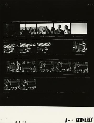 | Keywords: Ford A9429 NLGRF photo contact sheet (1976-04-30)(Gerald Ford Library).jpg White House Photographic Office WHPO is housed at the Gerald R Ford Presidential Library a branch of the National Archives and Records Administration NARA <br/><br/> This file is a 200 dpi photo contact sheet having images from roll of film A9429 of the August 9 1974 - January 20 1977 Gerald R Ford White House Photographic Office Series A0001-A9999 and B0001-B2886 photographs <br/><br/> The date on the photo contact sheet is the date the roll of film was processed not necessarily the date the photographs were taken See table below for additional details 1976-04-30 Gerald R Ford Presidential Library Image http //www fordlibrarymuseum gov/library/whphotos/A9429_NLGRF jpg A9429_NLGRF jpg from http //www fordlibrarymuseum gov/library/whphotos/19760430whpo pdf White House Photographs April 30 1976 of the http //www fordlibrarymuseum gov/Library/whphotos/whpo asp White House Photographic Collection page White House Photographic Office WHPO <br/> Creator David Hume Kennerly PD-USGov Institution Institution Gerald R Ford Presidential Library Table wikitable sortable + Photo contact sheet A9429 U S President Ford Administration Gerald R Ford Library Frame s Tone Subject proper Subject generic Names Geographic Location Photographer Date - 2 BW Primary Campaign Trip to Texas-President's Personal Photographer close-up Kennerly Air Force One Kennerly 1976-04-30 - 3-4 BW Primary Campaign Trip to Texas-Airport Arrival handshaking; cowgirl pins Big Friendly Lubbock pin on GRF's lapel GRF cowgirls; Media Lubbock TX Lubbock Municipal Airport Kennerly 1976-04-30 - 5 BW Primary Campaign Trip to Texas-Airport Arrival; Press Secretary standing together close ups; GRF wearing Big Friendly Lubbock pin GRF Nessen Lubbock TX Lubbock Municipal Airport Kennerly 1976-04-30 - 6 BW Kennerly 1976-04-30 - 7-18 BW Primary Campaign Trip to Texas-Open Forum sponsored by Texas Tech University-Remarks; University President Murray; Student Body President Wimmer GRF by flag saying Pledge of Allegiance hand over heart; GRF standing at podium onstage; various angles and distances GRF; Grover E Murray Terry Wimmer; Audience Lubbock TX Lubbock Municipal Coliseum Kennerly 1976-04-30 Gerald R Ford Presidential Library and Museum-cooperation PD-USGov Contact sheets by the Ford White House April 1976 Photographs by David Hume Kennerly from 1976 |