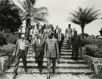 | Keywords: Ford A9613 NLGRF photo contact sheet (1976-04-27)(Gerald Ford Library2) (cropped).jpg White House Photographic Office WHPO is housed at the Gerald R Ford Presidential Library a branch of the National Archives and Records Administration NARA <br/><br/> This file is a 200 dpi photo contact sheet having images from roll of film A9613 of the August 9 1974 - January 20 1977 Gerald R Ford White House Photographic Office Series A0001-A9999 and B0001-B2886 photographs <br/><br/> The date on the photo contact sheet is the date the roll of film was processed not necessarily the date the photographs were taken See table below for additional details 1976-04-27 Gerald R Ford Presidential Library Image http //www fordlibrarymuseum gov/library/whphotos/A9613_NLGRF jpg A9613_NLGRF jpg from http //www fordlibrarymuseum gov/library/whphotos/19760427whpo pdf White House Photographs April 27 1976 of the http //www fordlibrarymuseum gov/Library/whphotos/whpo asp White House Photographic Collection page White House Photographic Office WHPO - Thomas PD-USGov Institution Institution Gerald R Ford Presidential Library Table wikitable sortable + Photo contact sheet A9613 U S President Ford Administration Gerald R Ford Library Frame s Tone Subject proper Subject generic Names Geographic Location Photographer Date - 5A-7A BW SecState Trip to Africa--SecState Trip to Africa--Arrival at President's Palace at Night standing in middle of room talking; sculpture beaded book on table Kissinger Charles W Robinson; Amb Walter Cutler William E Schaufele Jr Peter J Rodman Unidentified Kissinger staff; African man Kinshasa Zaire Africa President's Palace - Guesthouse Reception Room Thomas 1976-04-27 - 8A-12A BW SecState Trip to Africa--Breakfast with Zairian Foreign Minister Karl-i-Bond seated at rectangular dining table antlers and spears on wall below huge mural of natives Kissinger Jean Nguza Karl-i-Bond Charles W Robinson; Amb Walter Cutler William E Schaufele Jr Peter J Rodman; Unidentified African Official Kinshasa Zaire Africa President's Palace Thomas 1976-04-28 - 13A BW SecState Trip to Africa--Staff Suite standing in doorway reading newspapers William E Schaufele Jr Peter J Rodman Othersial Kinshasa Zaire Africa President's Palace - Kissinger Suite Thomas 1976-04-28 - 14A-16A BW SecState Trip to Africa--Women Waiting 3 African women one American woman seated on sofas by staircase talking Unidentified women Kinshasa Zaire Africa President's Palace Thomas 1976-04-28 - 17A-18A BW SecState Trip to Africa--Zairian Pres Mobutu Sese Seko standing in front of others under thatched roof on aptio Kissinger Mobutu Sese Seko Kinshasa Zaire Africa President's Palace Thomas 1976-04-28 - 19A-22A BW SecState Trip to Africa--Meeting on grass with Zairian President Mobutu Sese Seko; Zairian Foreign Minister Karl-i-Bond seated in lounge chairs on grass long view Kissinger Mobutu Sese Seko; Jean Nguza Karl-i-Bond; Amb Walter Cutler Charles W Robinson; William E Schaufele Jr Interpreter Others Kinshasa Zaire Africa President's Palace - Grass Thomas 1976-04-28 - 23A-27A BW SecState Trip to Africa--Meeting on grass with Zairian President Mobutu Sese Seko-departing from Mobuto shows guests caged leopard on Palace grounds; HAK Mobuto standing in front of leopard's cage; Robinson in front of leopard's cage Kissinger Mobutu Sese Seko Interpreter Charles W Robinson; Others Kinshasa Zaire Africa President's Palace - Zoo Thomas 1976-04-28 - 28A BW SecState Trip to Africa--Meeting on grass with Zairian President Mobutu Sese Seko-departing from Mobuto escorts HAK and entourage through Palace grounds; walking down steps with interpreter Kissinger Mobutu Sese Seko Interpreter Entourage Kinshasa Zaire Africa President's Palace Thomas 1976-04-28 - 29A BW SecState Trip to Africa--Boarding Pres Mobutu Sese Seko's Riverboat; Zairian Foreign Minister Karl-i-Bond standing by ramp to boat handshaking with officers Kissinger Jean Nguza Karl-i-Bond Entourage Zairian officers Kinshasa Zaire Africa Mobutu's Triple-Decked Riverboat Thomas 1976-04-28 - 30A-34A BW SecState Trip to Africa--DepSecState Addressing Unidentified Zairian officials Robinson at microphone others seated on platform; audience listening; television on Charles W Robinson; William Schaufele Jr Amb Walter Cutler Malcolm Butler notetaker Unidentified African Officials Kinshasa Zaire Africa Mobutu's Triple-Decked Riverboat Thomas 1976-04-28 - 35A-37 BW SecState Trip to Africa-Luncheon Aboard Mobutu's Riverboat serving themselves at luncheon buffet Kissinger Mobutu Sese Seko Entourage Kinshasa Zaire Africa Mobutu's Triple-Decked Riverboat Thomas 1976-04-28 Gerald R Ford Presidential Library and Museum-cooperation PD-USGov Contact sheets by the Ford White House April 1976 Mobutu Sese Seko Henry Kissinger in 1976 1976 in Zaire Relations of the United States and Zaire in 1976 Ford A9613 NLGRF photo contact sheet 1976-04-27 Gerald Ford Library jpg |
