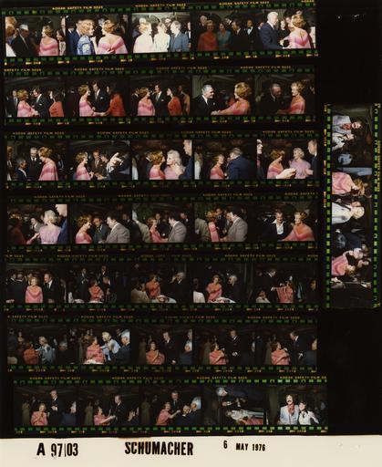 | Keywords: Ford A9703 NLGRF photo contact sheet (1976-05-06)(Gerald Ford Library).jpg White House Photographic Office WHPO is housed at the Gerald R Ford Presidential Library a branch of the National Archives and Records Administration NARA <br/><br/> This file is a 200 dpi photo contact sheet having images from roll of film A9703 of the August 9 1974 - January 20 1977 Gerald R Ford White House Photographic Office Series A0001-A9999 and B0001-B2886 photographs <br/><br/> The date on the photo contact sheet is the date the roll of film was processed not necessarily the date the photographs were taken See table below for additional details 1976-05-06 Gerald R Ford Presidential Library Image http //www fordlibrarymuseum gov/library/whphotos/A9703_NLGRF jpg A9703_NLGRF jpg from http //www fordlibrarymuseum gov/library/whphotos/19760506whpo pdf White House Photographs May 6 1976 of the http //www fordlibrarymuseum gov/Library/whphotos/whpo asp White House Photographic Collection page White House Photographic Office WHPO - Schumacher PD-USGov Institution Institution Gerald R Ford Presidential Library Table wikitable sortable + Photo contact sheet A9703 U S President Ford Administration Gerald R Ford Library Frame s Tone Subject proper Subject generic Names Geographic Location Photographer Date - 0A-1A Color First Lady's Trip to Los Angeles-PFC Celebrity Reception; Hollywood greeting eachother Betty Ford Steve Allen Jayne Meadows Beverly Hills CA Bistro Restaurant Schumacher 1976-05-06 - 2A-3A Color First Lady's Trip to Los Angeles-PFC Celebrity Reception; Hollywood mingling Betty Ford Unidentified Guests Beverly Hills CA Bistro Restaurant Schumacher 1976-05-06 - 4A Color First Lady's Trip to Los Angeles-PFC Celebrity Reception; Hollywood mingling Betty Ford Cesar Romero Beverly Hills CA Bistro Restaurant Schumacher 1976-05-06 - 5A-7A Color First Lady's Trip to Los Angeles-PFC Celebrity Reception; Hollywood greeting Betty Ford Hugh O'Brien Beverly Hills CA Bistro Restaurant Schumacher 1976-05-06 - 8A-10A Color First Lady's Trip to Los Angeles-PFC Celebrity Reception; Hollywood greeting Betty Ford Ernest Borgnine Beverly Hills CA Bistro Restaurant Schumacher 1976-05-06 - 11A Color First Lady's Trip to Los Angeles-PFC Celebrity Reception; Hollywood mingling Betty Ford Ricardo Montalban Jessica Walter Beverly Hills CA Bistro Restaurant Schumacher 1976-05-06 - 12A-15A Color First Lady's Trip to Los Angeles-PFC Celebrity Reception; Hollywood mingling Betty Ford Zsa Zsa Gabor; Marty Allen Beverly Hills CA Bistro Restaurant Schumacher 1976-05-06 - 16A-18A Color First Lady's Trip to Los Angeles-PFC Celebrity Reception; Hollywood mingling Betty Ford Marty Allen Beverly Hills CA Bistro Restaurant Schumacher 1976-05-06 - 19A-21A Color First Lady's Trip to Los Angeles-PFC Celebrity Reception; Hollywood mingling; all not in every frame Betty Ford Tony Curtis; Cary Grant Beverly Hills CA Bistro Restaurant Schumacher 1976-05-06 - 22A-23A Color First Lady's Trip to Los Angeles-PFC Celebrity Reception; Hollywood seated talking; BF smoking a cigarette Betty Ford Cary Grant Beverly Hills CA Bistro Restaurant Schumacher 1976-05-06 - 24A Color First Lady's Trip to Los Angeles-PFC Celebrity Reception; Hollywood talking; BF seated smoking cigarette Betty Ford Gordon MacRae Beverly Hills CA Bistro Restaurant Schumacher 1976-05-06 - 25A-26A Color First Lady's Trip to Los Angeles-PFC Celebrity Reception; Hollywood talking; BF seated smoking cigarette Betty Ford Zsa Zsa Gabor Beverly Hills CA Bistro Restaurant Schumacher 1976-05-06 - 27A-32A Color First Lady's Trip to Los Angeles-PFC Celebrity Reception; Hollywood talking singing; BF seated Betty Ford Gordon MacRae Beverly Hills CA Bistro Restaurant Schumacher 1976-05-06 - 33A Color First Lady's Trip to Los Angeles-PFC Celebrity Reception; Hollywood talking; BF seated Betty Ford Cary Grant Unidentified Guests Beverly Hills CA Bistro Restaurant Schumacher 1976-05-06 - 34A-35A Color First Lady's Trip to Los Angeles-PFC Celebrity Reception; Hollywood standing together Sony Bono Weidenfeld Beverly Hills CA Bistro Restaurant Schumacher 1976-05-06 - 36A Color First Lady's Trip to Los Angeles-PFC Celebrity Reception; Hollywood talking; BF seated smoking cigarette Betty Ford Zsa Zsa Gabor Beverly Hills CA Bistro Restaurant Schumacher 1976-05-06 - 37 Color First Lady's Trip to Los Angeles-PFC Celebrity Reception; Hollywood Caldiero kissing BF's hand; BF seated Betty Ford Jesse White Beverly Hills CA Bistro Restaurant Schumacher 1976-05-06 Gerald R Ford Presidential Library and Museum-cooperation PD-USGov Contact sheets by the Ford White House May 1976 |
