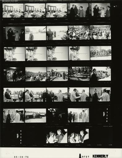 | Keywords: Ford A9727 NLGRF photo contact sheet (1976-05-07)(Gerald Ford Library).jpg White House Photographic Office WHPO is housed at the Gerald R Ford Presidential Library a branch of the National Archives and Records Administration NARA <br/><br/> This file is a 200 dpi photo contact sheet having images from roll of film A9727 of the August 9 1974 - January 20 1977 Gerald R Ford White House Photographic Office Series A0001-A9999 and B0001-B2886 photographs <br/><br/> The date on the photo contact sheet is the date the roll of film was processed not necessarily the date the photographs were taken See table below for additional details 1976-05-07 Gerald R Ford Presidential Library Image http //www fordlibrarymuseum gov/library/whphotos/A9727_NLGRF jpg A9727_NLGRF jpg from http //www fordlibrarymuseum gov/library/whphotos/19760507whpo pdf White House Photographs May 7 1976 of the http //www fordlibrarymuseum gov/Library/whphotos/whpo asp White House Photographic Collection page White House Photographic Office WHPO <br/> Creator David Hume Kennerly PD-USGov Institution Institution Gerald R Ford Presidential Library Table wikitable sortable + Photo contact sheet A9727 U S President Ford Administration Gerald R Ford Library Frame s Tone Subject proper Subject generic Names Geographic Location Photographer Date - 1A-3A BW Morning Meeting with Chief of Staff Cheney seated at desk working; long view GRF Cheney Oval Office Kennerly 1976-05-07 - 4A-6A BW Greeting White House Visitors standing handshaking GRF Unidentified Men Woman Colonnade Kennerly 1976-05-07 - 7A BW Trip to Nebraska-Departing for GRF walking across lawn to Marine I visitors lined up in background GRF White House Visitors South Lawn Kennerly 1976-05-07 - 8A BW Trip to Nebraska; Remarks to Press - Omaha Nebraska GRF at microphone on tarmac GRF Secret Service Pontius Omaha NE Offutt Air Force Base Kennerly 1976-05-07 - 9A-10A BW Trip to Nebraska; Visit to President Ford Birthplace Park; Remarks to Press; Park Benefactor and COE Standard Chemical Manufacturing Paxson; Secretary of Agriculture Butz; US Senators from Nebraska NE - Omaha Nebraska standing before amphitheatre as marching band passes addressing press at microphone; various angles and distances; all not in every frame GRF Marching Band Secret Service Media; James M Paxson Butz Sens Roman L Hruska Carl T Curtis Omaha NE President Ford Birthplace Park Kennerly 1976-05-07 - 11A-15A BW Trip to Nebraska; Visit to President Ford Birthplace Park; Flag-Raising Ceremony with Boy Scout Troop 88 - Omaha Nebraska GRF stands at attention as boy scouts raise flag; scouts gathered in circle around flagpole; various angles and distances; all not in every frame GRF Boy Scouts Omaha NE President Ford Birthplace Park Kennerly 1976-05-07 - 16A BW Trip to Nebraska; Ground-Breaking Ceremony for Two Additions to Archbishop Bergan-Mercy Hospital; Tour of Facility - Omaha Nebraska handshaking in hallway GRF Pontius nursing staff patients Omaha NE Archbishop Bergan-Mercy Hospital Kennerly 1976-05-07 - 17A BW Trip to Nebraska; Ground-Breaking Ceremony for Two Additions to Archbishop Bergan-Mercy Hospital; GRF Remarks -Omaha Nebraska GRF at podium guests with back to camera crowd in background GRF Platform Guests Audience Omaha NE Archbishop Bergan-Mercy Hospital Kennerly 1976-05-07 - 18A BW Trip to Nebraska; Ground-Breaking Ceremony for Two Additions to Archbishop Bergan-Mercy Hospital - Omaha Nebraska standing on grass holding shovel GRF Archbishop Sheehan Sister Mary Vera O'Connor Crowd Police Secret Service Media Omaha NE Archbishop Bergan-Mercy Hospital Kennerly 1976-05-07 - 19A BW Trip to Nebraska; Ground-Breaking Ceremony for Two Additions to Archbishop Bergan-Mercy Hospital - Omaha Nebraska walking by roped-off crowd Secret Service Crowd Omaha NE Archbishop Bergan-Mercy Hospital Kennerly 1976-05-07 - 20A BW Trip to Nebraska; Ground-Breaking Ceremony for Two Additions to Archbishop Bergan-Mercy Hospital - Omaha Nebraska GRF handshaking with roped-off crowd GRF Crowd Secret Service Omaha NE Archbishop Bergan-Mercy Hospital Kennerly 1976-05-07 - 21A-22A BW Trip to Nebraska; Ground-Breaking Ceremony for Two Additions to Archbishop Bergan-Mercy Hospital; Presentation of Sister Mary Mathews Painting and Plaque - Omaha Nebraska artist Mathews presents painting man holding plaque others standing by GRF Sister Mary Mathews Archbishop Sheehan Omaha NE Archbishop Bergan-Mercy Hospital Kennerly 1976-05-07 - 23A-24A BW Trip to Nebraska; Ground-Breaking Ceremony for Two Additions to Archbishop Bergan-Mercy Hospital; Departing from - Omaha Nebraska standing talking by limousine GRF Archbishop Sheehan Unidentified Man Omaha NE Archbishop Bergan-Mercy Hospital Kennerly 1976-05-07 - 25A-26A BW Trip to Nebraska; Hotel Arrival; Hotel General Manager - Omaha Nebraska standing handshaking outside by door GRF Mark Schimmel; Secret Service Media Others Omaha NE Ramada Inn Kennerly 1976-05-07 - 27A BW Trip to Nebraska; Hotel Arrival; Hotel General Manager - Omaha Nebraska standing in front of parked limousine Mark Schimmel Omaha NE Ramada Inn Kennerly 1976-05-07 - 28A BW Trip to Nebraska; Nebraska PFC Contributors Receptions; GRF Remarks - Omaha Nebraska GRF at microphone in dark room GRF Guests Omaha NE Ramada Inn - Hall of Four Flags Ballroom Kennerly 1976-05-07 - 29A BW Trip to Nebraska; Hotel Arrival; hotel owners -Omaha Nebraska standing handshaking GRF Leonard Harper Jr Leonard Harper Sr Unidentified Woman Others Omaha NE Holiday Inn West Kennerly 1976-05-07 - 30A-31A BW Trip to Nebraska; Farm Forum; GRF Remarks - Omaha Nebraska GRF at lit podium in large dark room; long shot GRF Audience Omaha NE Holiday Inn West Kennerly 1976-05-07 - 32A BW Kennerly 1976-05-07 - 33A-34A BW Trip to Nebraska; Farm Forum; Departing from -Omaha Nebraska standing together in dark; GRF with pen in hand autographs GRF Unidentified young women Omaha NE Holiday Inn West Kennerly 1976-05-07 Gerald R Ford Presidential Library and M