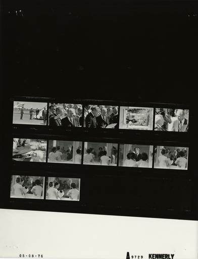 | Keywords: Ford A9729 NLGRF photo contact sheet (1976-05-07)(Gerald Ford Library).jpg White House Photographic Office WHPO is housed at the Gerald R Ford Presidential Library a branch of the National Archives and Records Administration NARA <br/><br/> This file is a 200 dpi photo contact sheet having images from roll of film A9729 of the August 9 1974 - January 20 1977 Gerald R Ford White House Photographic Office Series A0001-A9999 and B0001-B2886 photographs <br/><br/> The date on the photo contact sheet is the date the roll of film was processed not necessarily the date the photographs were taken See table below for additional details 1976-05-07 Gerald R Ford Presidential Library Image http //www fordlibrarymuseum gov/library/whphotos/A9729_NLGRF jpg A9729_NLGRF jpg from http //www fordlibrarymuseum gov/library/whphotos/19760507whpo pdf White House Photographs May 7 1976 of the http //www fordlibrarymuseum gov/Library/whphotos/whpo asp White House Photographic Collection page White House Photographic Office WHPO <br/> Creator David Hume Kennerly PD-USGov Institution Institution Gerald R Ford Presidential Library Table wikitable sortable + Photo contact sheet A9729 U S President Ford Administration Gerald R Ford Library Frame s Tone Subject proper Subject generic Names Geographic Location Photographer Date - 2A BW Trip to Nebraska; Farm Forum; Airport Arrival - Omaha Nebraska GRF handshaking with military at bottom of ramp of plane GRF Military Secret Service Omaha NE Offutt Air Force Base Kennerly 1976-05-07 - 3A-4A BW Trip to Nebraska; Visit to President Ford Birthplace Park; Park Benefactor and COE Standard Chemical Manufacturing Paxson - Omaha Nebraska viewing document and Paxson pointing; Butz in frame 4A; GRF Paxon walking together; GRF talking with press boy scout GRF James M Paxson Pontius Crowd; Sec Earl Butz Media Boy Scout Omaha NE President Ford Birthplace Park Kennerly 1976-05-07 - 5A BW Trip to Nebraska; Visit to President Ford Birthplace Park; Park Benefactor and COE Standard Chemical Manufacturing Paxson - Omaha Nebraska walking under wood canopy; long shot GRF James M Paxson Omaha NE President Ford Birthplace Park Kennerly 1976-05-07 - 6A-7A BW Trip to Nebraska; Visit to President Ford Birthplace Park; Park Benefactor and COE Standard Chemical Manufacturing Paxson - Omaha Nebraska greeting handshaking; all not in both frames GRF Crowd Omaha NE President Ford Birthplace Park Kennerly 1976-05-07 - 8A-13A BW Trip to Nebraska; Ground-Breaking Ceremony for Two Additions to Archbishop Bergan-Mercy Hospital; Tour of Facility - Omaha Nebraska nurses facing GRF backs to camera; GRF smiles at newborn baby through glass window GRF nurses infant Media Omaha NE Archbishop Bergan-Mercy Hospital Kennerly 1976-05-07 Gerald R Ford Presidential Library and Museum-cooperation PD-USGov Contact sheets by the Ford White House May 1976 Photographs by David Hume Kennerly from 1976 |