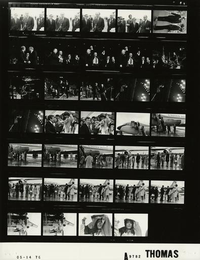 Keywords: Ford A9782 NLGRF photo contact sheet (1976-05-14)(Gerald Ford Library).jpg White House Photographic Office WHPO is housed at the Gerald R Ford Presidential Library a branch of the National Archives and Records Administration NARA <br/><br/> This file is a 200 dpi photo contact sheet having images from roll of film A9782 of the August 9 1974 - January 20 1977 Gerald R Ford White House Photographic Office Series A0001-A9999 and B0001-B2886 photographs <br/><br/> The date on the photo contact sheet is the date the roll of film was processed not necessarily the date the photographs were taken See table below for additional details 1976-05-14 Gerald R Ford Presidential Library Image http //www fordlibrarymuseum gov/library/whphotos/A9782_NLGRF jpg A9782_NLGRF jpg from http //www fordlibrarymuseum gov/library/whphotos/19760514whpo pdf White House Photographs May 14 1976 of the http //www fordlibrarymuseum gov/Library/whphotos/whpo asp White House Photographic Collection page White House Photographic Office WHPO - Thomas PD-USGov Institution Institution Gerald R Ford Presidential Library Table wikitable sortable + Photo contact sheet A9782 U S President Ford Administration Gerald R Ford Library Frame s Tone Subject proper Subject generic Names Geographic Location Photographer Date - 3A-6A BW Primary Campaign Trip to Tennessee; Press Q A; US Senator and Representative from Tennessee TN standing on tarmac GRF at microphone GRF Sen Howard Baker Rep James Quillen Bristol TN Tri-City Airport Thomas 1976-05-14 - 7A BW Primary Campaign Trip to Tennessee-Chief of Staff Cheney and Consultant Schneider standing on tarmac Cheney holding cane Cheney Don Penny Schneider Bristol TN Tri-City Airport Thomas 1976-05-14 - 8A-15A BW Primary Campaign Trip to Tennessee; Campaign Rally; US Senator and Representative from Tennessee TN ; Republican County Chairman Williams standing onstage applauding cheering handshaking; hand over heart; Pledge of Allegiance GRF Sen Howard Baker Rep James Quillen Ed Williams III Secret Service Girl Scouts Johnson City TN Freedom Hall Convention Center Thomas 1976-05-14 - 16A-18A BW Primary Campaign Trip to Tennessee-Campaign Rally-GRF Remarks GRF at podium lit in a dark room GRF Johnson City TN Freedom Hall Convention Center Thomas 1976-05-14 - 19A-20A BW Primary Campaign Trip to Tennessee; Airport Departure; US Senator from Tennessee TN handshaking talking laughing Sen Howard Baker Crowd Bristol TN Tri-City Airport Thomas 1976-05-14 - 21A BW Primary Campaign Trip to Tennessee-Airport Departure; waving waving from top steps from Air Force One GRF Bristol TN Tri-City Airport Thomas 1976-05-14 - 22A-34A BW Primary Campaign Trip to Tennessee; Airport Arrival; US Senator and Representative from Tennessee TN ; Former Governor of Tennessee Winfield Dunn descending ramp from Air Force One handshaking with greeters on tarmac GRF Sen Mrs Howard Baker Winfield Dunn Rep James Quillen; Mr Mrs Edward Boldt Mr Mrs Norman Brewer Secret Service Bristol TN Tri-City Airport Thomas 1976-05-14 - 35A-36A BW Primary Campaign Trip to Tennessee-Airport Arrival coat over head rain holding paper and pencil for GRF autograph Unidentified Young Woman in Crowd Bristol TN Tri-City Airport Thomas 1976-05-14 Gerald R Ford Presidential Library and Museum-cooperation PD-USGov Contact sheets by the Ford White House May 1976 Winfield Dunn 1976 in Tennessee Gerald Ford in 1976 Rain in Tennessee |