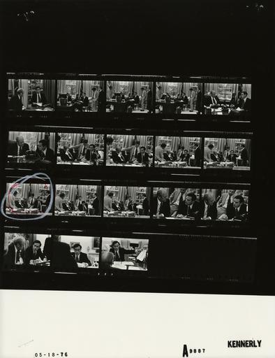 | Keywords: Ford A9887 NLGRF photo contact sheet (1976-05-18)(Gerald Ford Library).jpg White House Photographic Office WHPO is housed at the Gerald R Ford Presidential Library a branch of the National Archives and Records Administration NARA <br/><br/> This file is a 200 dpi photo contact sheet having images from roll of film A9887 of the August 9 1974 - January 20 1977 Gerald R Ford White House Photographic Office Series A0001-A9999 and B0001-B2886 photographs <br/><br/> The date on the photo contact sheet is the date the roll of film was processed not necessarily the date the photographs were taken See table below for additional details 1976-05-18 Gerald R Ford Presidential Library Image http //www fordlibrarymuseum gov/library/whphotos/A9887_NLGRF jpg A9887_NLGRF jpg from http //www fordlibrarymuseum gov/library/whphotos/19760518whpo pdf White House Photographs May 18 1976 of the http //www fordlibrarymuseum gov/Library/whphotos/whpo asp White House Photographic Collection page White House Photographic Office WHPO <br/> Creator David Hume Kennerly PD-USGov Institution Institution Gerald R Ford Presidential Library Table wikitable sortable + Photo contact sheet A9887 U S President Ford Administration Gerald R Ford Library Frame s Tone Subject proper Subject generic Names Geographic Location Photographer Date - 4-21 BW Meeting with BBB O President Jordan and V P Maloney and consultant Penny Schneider; Batton Barton Durstine and Osborn Inc NY advertising firm seated standing around desk; Penny in light suit Maloney in dark suit; Jordan talking to GRF; Jordan gesturing GRF James J Jordan Jr Don Penny Schneider Cheney Raymond J Maloney Jr Oval Office Kennerly 1976-05-18 Gerald R Ford Presidential Library and Museum-cooperation PD-USGov Contact sheets by the Ford White House May 1976 Photographs by David Hume Kennerly from 1976 |