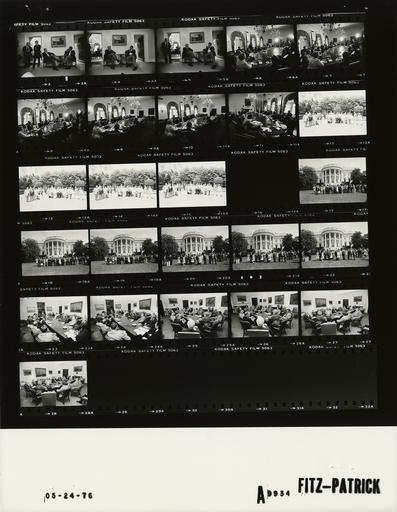 | Keywords: Ford A9934 NLGRF photo contact sheet (1976-05-21)(Gerald Ford Library).jpg White House Photographic Office WHPO is housed at the Gerald R Ford Presidential Library a branch of the National Archives and Records Administration NARA <br/><br/> This file is a 200 dpi photo contact sheet having images from roll of film A9934 of the August 9 1974 - January 20 1977 Gerald R Ford White House Photographic Office Series A0001-A9999 and B0001-B2886 photographs <br/><br/> The date on the photo contact sheet is the date the roll of film was processed not necessarily the date the photographs were taken See table below for additional details 1976-05-21 Gerald R Ford Presidential Library Image http //www fordlibrarymuseum gov/library/whphotos/A9934_NLGRF jpg A9934_NLGRF jpg from http //www fordlibrarymuseum gov/library/whphotos/19760521whpo pdf White House Photographs May 21 1976 of the http //www fordlibrarymuseum gov/Library/whphotos/whpo asp White House Photographic Collection page White House Photographic Office WHPO - Fitz-Patrick PD-USGov Institution Institution Gerald R Ford Presidential Library Table wikitable sortable + Photo contact sheet A9934 U S President Ford Administration Gerald R Ford Library Frame s Tone Subject proper Subject generic Names Geographic Location Photographer Date - 3-5 BW White House Staff; USSS; Meeting with Agricultural Policy Committee standing sitting in hall outside Cabinet Room door Unidentified butlers Secret Service Cabinet Room Doorway/West Wing Hall Fitz-Patrick 1976-05-21 - 6-11 BW Meeting with Agricultural Policy Committee seated at table; all may not be shown GRF Sec Butz Charles Robinson Parksy Darman Dent Greenspan Seidman Scowcroft Knauer James Mitchell Richard Bell Donald Paarlberg Paul MacAvoy James Cavanaugh Paul Leach Cabinet Room Fitz-Patrick 1976-05-21 - 12-15 BW Unidentified Large Group Visiting White House standing on grass posing; mostly seniors Unidentified Men Women Kennedy Garden Fitz-Patrick 1976-05-21 - 16 BW No Subject Fitz-Patrick 1976-05-21 - 17-22 BW Unidentified Large Group Visiting White House standing on grass posing Ted Marrs Unidentified Men Women South Lawn Fitz-Patrick 1976-05-21 - 23-28 BW White House Meeting with Special Assistant for Consumer Affairs; Public Liaison Office seated at table Virginia Knauer Unidentified Men Women Roosevelt Room Fitz-Patrick 1976-05-21 Gerald R Ford Presidential Library and Museum-cooperation PD-USGov Contact sheets by the Ford White House May 1976 |