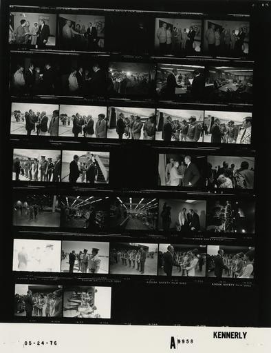 | Keywords: Ford A9958 NLGRF photo contact sheet (1976-05-24)(Gerald Ford Library).jpg White House Photographic Office WHPO is housed at the Gerald R Ford Presidential Library a branch of the National Archives and Records Administration NARA <br/><br/> This file is a 200 dpi photo contact sheet having images from roll of film A9958 of the August 9 1974 - January 20 1977 Gerald R Ford White House Photographic Office Series A0001-A9999 and B0001-B2886 photographs <br/><br/> The date on the photo contact sheet is the date the roll of film was processed not necessarily the date the photographs were taken See table below for additional details 1976-05-24 Gerald R Ford Presidential Library Image http //www fordlibrarymuseum gov/library/whphotos/A9958_NLGRF jpg A9958_NLGRF jpg from http //www fordlibrarymuseum gov/library/whphotos/19760524whpo pdf White House Photographs May 24 1976 of the http //www fordlibrarymuseum gov/Library/whphotos/whpo asp White House Photographic Collection page White House Photographic Office WHPO <br/> Creator David Hume Kennerly PD-USGov Institution Institution Gerald R Ford Presidential Library Table wikitable sortable + Photo contact sheet A9958 U S President Ford Administration Gerald R Ford Library Frame s Tone Subject proper Subject generic Names Geographic Location Photographer Date - 2-8 BW Trip to California; PFC Breakfast Reception - Laguna Hills California standing handshaking posing signing GRF Unidentified Men Women Laguna Hills CA Hilton Hotel - Ballroom Kennerly 1976-05-24 - 9 BW Trip to California; 56th Annual Convention of California Peace Officers Association CPOA ; Remarks - Anaheim California GRF at podium camera behind platform facing audience GRF Audience Platform Guests Anaheim CA Sheraton Anaheim Hotel Kennerly 1976-05-24 - 10-11 BW Trip to California; Meeting with Chief of Staff and others - Anaheim California standing sitting around table GRF Cheney Raoul-Duval O'Donnell Anaheim CA Sheraton Anaheim Hotel - Holding Room Kennerly 1976-05-24 - 12-18 BW Trip to California; Airport Departure; Nevada Attorney General List - El Toro California handshaking on tarmac in front of Air Force One; List introducing in fr 12-13; Gragson and Mauldin may not be shown GRF Robert List Oran Gragson Glen Mauldin othrs California State Highway Patrol Others El Toro CA E1 Toro Marine Corps Air Station Kennerly 1976-05-24 - 19 BW Trip to California Kennerly 1976-05-24 - 20-21 BW Trip to Nevada; Hotel Departure; hotel management; Nevada RNC Committeewoman - Las Vegas Nevada standing handshaking talking GRF Hotel Guard Robert F Samuels or Alan L Parks Lucy Humphrey Oran Gragson Las Vegas NV MGM Grand Hotel - Indoors/Outdoo rs Kennerly 1976-05-24 - 22 BW Trip to Nevada; Nevada State PFC Reception; Arriving; Nevada RNC Committeewoman; Nev State PFC Chairman Gragson - Las Vegas Nevada walking through garage GRF Secret Service Oran Gragson Mrs Marvin B Lucy Humphrey Las Vegas NV Las Vegas Convention Center -Parking Garage Kennerly 1976-05-24 - 23-24 BW Trip to Nevada; Nevada State PFC Reception; Nev State PFC Chairman Gragson - Las Vegas Nevada entering on platform GRF Oran Gragson Audience Las Vegas NV Las Vegas Convention Center Kennerly 1976-05-24 - 25 BW Trip to Nevada; Preparing for Interview with local Nevada television and radio stations representatives - Las Vegas Nevada GRF being seated for interview GRF cameraman Others Las Vegas NV Las Vegas Convention Center -Holding Room Kennerly 1976-05-24 - 26 BW Trip to Nevada; Private PFC Reception; Departing - Las Vegas Nevada standing talking in empty room GRF Others Nessen Secret Service Las Vegas NV Las Vegas Convention Center Kennerly 1976-05-24 - 27-33 BW Trip to Nevada; Airport Departure -Las Vegas Nevada standing on tarmac talking handshaking; line of young women in short stewardess costumes GRF Police Officers Media; stewardesses Raoul-Duval Las Vegas NV McCarran Field Kennerly 1976-05-24 - 27-33 BW Trip to Nevada; Airport Departure -Las Vegas Nevada standing on tarmac talking handshaking; line of young women in short stewardess uniforms GRF Police Officers Media; stewardesses Raoul-Duval Las Vegas NV Lindbergh Field Kennerly 1976-05-24 Gerald R Ford Presidential Library and Museum-cooperation PD-USGov Contact sheets by the Ford White House May 1976 Photographs by David Hume Kennerly from 1976 |