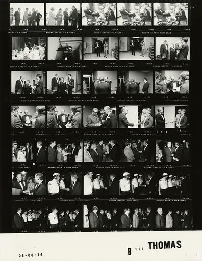 | Keywords: Ford B0111 NLGRF photo contact sheet (1976-06-06)(Gerald Ford Library).jpg White House Photographic Office WHPO is housed at the Gerald R Ford Presidential Library a branch of the National Archives and Records Administration NARA <br/><br/> This file is a 200 dpi photo contact sheet having images from roll of film B0111 of the August 9 1974 - January 20 1977 Gerald R Ford White House Photographic Office Series A0001-A9999 and B0001-B2886 photographs <br/><br/> The date on the photo contact sheet is the date the roll of film was processed not necessarily the date the photographs were taken See table below for additional details 1976-06-06 Gerald R Ford Presidential Library Image http //www fordlibrarymuseum gov/library/whphotos/B0111_NLGRF jpg B0111_NLGRF jpg from http //www fordlibrarymuseum gov/library/whphotos/19760606whpo pdf White House Photographs June 6 1976 of the http //www fordlibrarymuseum gov/Library/whphotos/whpo asp White House Photographic Collection page White House Photographic Office WHPO - Thomas PD-USGov Institution Institution Gerald R Ford Presidential Library Table wikitable sortable + Photo contact sheet B0111 U S President Ford Administration Gerald R Ford Library Frame s Tone Subject proper Subject generic Names Geographic Location Photographer Date - 2-3 B Campaign Trip to Ohio - Arrival in Cleveland Ohio greeting handshaking; all not in both frames GRF Others Cleveland OH Cleveland-Hopkins Airport Thomas 1976-06-06 - 4-6 B Campaign Trip to Ohio - Factory Worker McInerney Spring and Wire Company Grand Rapids Michigan Member of the American Latvian Association seated talking; GRF in formal wear GRF Julius Riekstins Cleveland OH Sheraton Cleveland Hotel - President's Suite Thomas 1976-06-06 - 7 B Campaign Trip to Ohio - 41st Annual Golden Wedding Party hosted by The Cleveland Press in honor of couples celebrating their 50th wedding anniversary GRF on stage in formal wear; others standing applauding wearing crowns; all not in frame GRF Golden Wedding Celebrants Cleveland OH Sheraton Cleveland Hotel - Gold Room Thomas 1976-06-06 - 8 B Campaign Trip to Ohio - Prior to Award Dinner of the Northern Ohio Region of the National Conference on Christians and Jews standing looking over speech; formal wear GRF Cleveland OH Sheraton Cleveland Hotel - Gold Room - Outside Thomas 1976-06-06 - 9-10 B Campaign Trip to Ohio - Prior to Award Dinner of the Northern Ohio Region of the National Conference on Christians and Jews standing GRF looking over speech; GRF in formal wear; Keiser to GRF's left GRF Keiser Cleveland OH Sheraton Cleveland Hotel - Gold Room - Outside Thomas 1976-06-06 - 11-13 B Campaign Trip to Ohio - US Representative from Ohio standing talking; GRF in formal wear GRF Rep Bolton Unidentified Man Cleveland OH Sheraton Cleveland Hotel - Unidentified Room Thomas 1976-06-06 - 14-19 B Campaign Trip to Ohio - Governor of Ohio standing talking; various angles and distances; all not in every frame; GRF in formal wear GRF Gov Rhodes Cheney Cannon Others Cleveland OH Sheraton Cleveland Hotel - Unidentified Room Thomas 1976-06-06 - 20-21 B Campaign Trip to Ohio standing handshaking talking; GRF in formal wear GRF Unidentified Man Woman Cleveland OH Sheraton Cleveland Hotel - Unidentified Room Thomas 1976-06-06 - 22-25 B Campaign Trip to Ohio - Prior to Departure for Cincinnati Ohio handshaking saying goodbye; all not in every frame; GRF in formal wear; night shots GRF Others Cleveland OH Cleveland-Hopkins Airport Thomas 1976-06-06 - 26 B Campaign Trip to Ohio - Prior to Departure for Cincinnati Ohio - Mayor of Cleveland Ohio handshaking saying goodbye; formal wear; night shot GRF Mayor Perk Cleveland OH Cleveland-Hopkins Airport Thomas 1976-06-06 - 27 B Campaign Trip to Ohio - Prior to Departure for Cincinnati Ohio - Mayor of Cleveland Ohio handshaking saying goodbye; formal wear; night shot GRF Mayor Perk Others Cleveland OH Cleveland-Hopkins Airport Thomas 1976-06-06 - 28-33 B Campaign Trip to Ohio - Prior to Departure for Cincinnati Ohio handshaking saying goodbye; all not in every frame; GRF in formal wear; night shots GRF Police Officers Others Cleveland OH Cleveland-Hopkins Airport Thomas 1976-06-06 - 34-36 B Campaign Trip to Ohio - Prior to Departure for Cincinnati Ohio handshaking saying goodbye; all not in every frame; GRF in formal wear; night shots GRF Others Cleveland OH Cleveland-Hopkins Airport Thomas 1976-06-06 Gerald R Ford Presidential Library and Museum-cooperation PD-USGov Contact sheets by the Ford White House June 1976 |