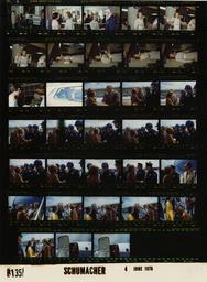 | Keywords: Ford B0135 NLGRF photo contact sheet (1976-06-04)(Gerald Ford Library).jpg White House Photographic Office WHPO is housed at the Gerald R Ford Presidential Library a branch of the National Archives and Records Administration NARA <br/><br/> This file is a 200 dpi photo contact sheet having images from roll of film B0135 of the August 9 1974 - January 20 1977 Gerald R Ford White House Photographic Office Series A0001-A9999 and B0001-B2886 photographs <br/><br/> The date on the photo contact sheet is the date the roll of film was processed not necessarily the date the photographs were taken See table below for additional details 1976-06-04 Gerald R Ford Presidential Library Image http //www fordlibrarymuseum gov/library/whphotos/B0135_NLGRF jpg B0135_NLGRF jpg from http //www fordlibrarymuseum gov/library/whphotos/19760604whpo pdf White House Photographs June 4 1976 of the http //www fordlibrarymuseum gov/Library/whphotos/whpo asp White House Photographic Collection page White House Photographic Office WHPO - Schumacher PD-USGov Institution Institution Gerald R Ford Presidential Library Table wikitable sortable + Photo contact sheet B0135 U S President Ford Administration Gerald R Ford Library Frame s Tone Subject proper Subject generic Names Geographic Location Photographer Date - 2 Color First Lady's Trip to California children standing in line; BF talking to them Betty Ford Unidentified Children Oakland CA Claremont Hotel Schumacher 1976-06-04 - 3 Color First Lady's Trip to California standing talking handshaking Betty Ford Unidentified Woman Oakland CA Claremont Hotel Schumacher 1976-06-04 - 4 Color First Lady's Trip to California standing talking handshaking Betty Ford Unidentified Man Oakland CA Claremont Hotel Schumacher 1976-06-04 - 5-11 Color First Lady's Trip to California - Remarks at the Bay Area Republican Alliance Reception BF standing at microphone talking gesturing; others in background; all not in frames Betty Ford Others Oakland CA Claremont Hotel - Gaslight Room Schumacher 1976-06-04 - 12 Color First Lady's Trip to California - Remarks at the Bay Area Republican Alliance Reception standing talking; BF holding flowers head turned away from camera Betty Ford Unidentified Man Oakland CA Claremont Hotel - Gaslight Room Schumacher 1976-06-04 - 13 Color First Lady's Trip to California - Motorcade to the Oakland International Airport seated in back seat talking on telephone; taken through window from outside vehicle Betty Ford Oakland CA Limousine Schumacher 1976-06-04 - 14 Color First Lady's Trip to California - Arrival at the Oakland International Airport Prior to Departure for Monterey Peninsula Airport standing talking; police motorcycles in background Betty Ford Unidentified Man Oakland CA Oakland International Airport Schumacher 1976-06-04 - 15-27 Color First Lady's Trip to California - Prior to Departure for Monterey Peninsula Airport handshaking talking saying goodbye; all not in every frame; C-9 Jetstar Aircraft in frames 26 and 27 Betty Ford Unidentified Man Police Oakland Officers Others Oakland CA Oakland International Airport Schumacher 1976-06-04 - 28-32 Color First Lady's Trip to California - Prior to Departure for Monterey Peninsula Airport handshaking talking saying goodbye; BF bending to hug a child in frame 31 Betty Ford Unidentified Men Women Oakland CA Oakland International Airport Schumacher 1976-06-04 - 33-24 Color First Lady's Trip to California - Prior to Departure for Monterey Peninsula Airport standing waving in doorway of C-9 Jetstar Aircraft; close up taken from ground level Betty Ford Oakland CA Oakland International Airport Schumacher 1976-06-04 Gerald R Ford Presidential Library and Museum-cooperation PD-USGov Contact sheets by the Ford White House June 1976 |