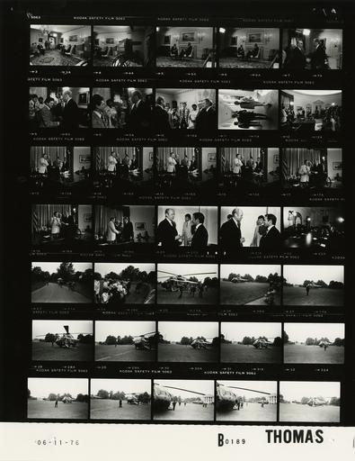 | Keywords: Ford B0189 NLGRF photo contact sheet (1976-06-11)(Gerald Ford Library).jpg White House Photographic Office WHPO is housed at the Gerald R Ford Presidential Library a branch of the National Archives and Records Administration NARA <br/><br/> This file is a 200 dpi photo contact sheet having images from roll of film B0189 of the August 9 1974 - January 20 1977 Gerald R Ford White House Photographic Office Series A0001-A9999 and B0001-B2886 photographs <br/><br/> The date on the photo contact sheet is the date the roll of film was processed not necessarily the date the photographs were taken See table below for additional details 1976-06-11 Gerald R Ford Presidential Library Image http //www fordlibrarymuseum gov/library/whphotos/B0189_NLGRF jpg B0189_NLGRF jpg from http //www fordlibrarymuseum gov/library/whphotos/19760611whpo pdf White House Photographs June 11 1976 of the http //www fordlibrarymuseum gov/Library/whphotos/whpo asp White House Photographic Collection page White House Photographic Office WHPO - Thomas PD-USGov Institution Institution Gerald R Ford Presidential Library Table wikitable sortable + Photo contact sheet B0189 U S President Ford Administration Gerald R Ford Library Frame s Tone Subject proper Subject generic Names Geographic Location Photographer Date - 3A B Interview with Representatives of The National Education Association seated talking; GRF and and Unidentified Man seated near fireplace; others seated on left of frame GRF John Ryor Judy Owens Keith Geiger John McGarigal Willard McGuire Ground Floor -Map Room Thomas 1976-06-11 - 4A-6A B Interview with Representatives of The National Education Association seated near fireplace talking; TV camera in foreground in frame 4 GRF Unidentified Man John Ryor Keith Geiger John McGarigal Willard McGuire Ground Floor -Map Room Thomas 1976-06-11 - 7A B Following Interview with Representatives of The National Education Association standing talking handshaking GRF Unidentified Man John Ryor Keith Geiger John McGarigal Willard McGuire Ground Floor -Map Room Thomas 1976-06-11 - 8A-10A B Following Interview with Representatives of The National Education Association standing talking handshaking; all not in every frame GRF John Ryor Judy Owens Keith Geiger John McGarigal Willard McGuire Ground Floor -Map Room Thomas 1976-06-11 - 11A B Following Interview with Representatives of The National Education Association GRF and Nessen in foreground talking; moving toward camera GRF Nessen Secret Service Colonnade Thomas 1976-06-11 - 12A-16A B Request to Congress for Supplemental Appropriations tfor Victims of Flood Damage Caused by Collapse of Teton Dam In Idaho ID - Secretary of the Interior; Secretary of Agriculture GRF seated behind desk; reading signing statement; others standing behind GRF GRF Kleppe Knebel Two Unidentified Men Oval Office Thomas 1976-06-11 - 17A-19A B Request to Congress for Supplemental Appropriations tfor Victims of Flood Damage Caused by Collapse of Teton Dam In Idaho ID - Secretary of the Interior; Secretary of Agriculture standing talking; looking at document GRF Kleppe Knebel Two Unidentified Men Oval Office Thomas 1976-06-11 - 20A-21A B standing talking GRF Unidentified Man Scheduling and Advance Office Thomas 1976-06-11 - 22A B Taping Messages for Vocational Industrial Clubs of America VICA and US Skill Olympic; National Association of Student Councils and National Association of Student Activity Advisors; Japanese American Citizens; Slovak-American Community GRF seated at table on right of frame; speaking; Cameraman across table from GRF GRF Television Cameraman Cabinet Room Thomas 1976-06-11 - 23A B Prior to Departure for Campaign Trip to Missouri walking across driveway toward helicopter not seen ; guard shack in background GRF O'Donnell Raoul-Duval; Others South Driveway Thomas 1976-06-11 - 24A B Prior to Departure for Campaign Trip to Missouri GRF standing talking greeting; some students taking photos GRF Unidentified Group of Adults Students South Lawn Thomas 1976-06-11 - 25A B Prior to Departure for Campaign Trip to Missouri - US Senators from Texas TX Kansas KS Tennessee TN GRF and Tower greeting handshaking; Dole Baker others Marine One copter in background GRF Sens Tower Dole Baker; Others South Lawn Thomas 1976-06-11 - 26A B Prior to Departure for Campaign Trip to Missouri kneeling on driveway; shooting photos of Marine One copter preparing to leave Media South Lawn Thomas 1976-06-11 - 27A-29A B Prior to Departure for Campaign Trip to Missouri moving around Marine One; door still open on copter White House staff South Lawn Thomas 1976-06-11 - 30A-33A B Prior to Departure for Campaign Trip to Missouri moving around Marine One; 2nd helicopter approaching landing White House staff South Lawn Thomas 1976-06-11 - 34A B Prior to Departure for Campaign Trip to Missouri - Possible Problem with Helicopter walking talking; moving from near helicopter to 2nd helicopter in background Marine One GRF O'Donnell South Lawn Thomas 1976-06-11 - 35A-36A B Prior to Departure for Campaign Trip to Missouri - Possible Problem with Helicopter; US Senators from Texas TX Kansas KS Tennessee TN walking toward Marine One; 2nd helicopter and White House in background GRF Tower Dole Baker; Others South Lawn Thomas 1976-06-11 - 37 B Departure for Campaign Trip to Missouri - Possible Problem with Helicopter Marine One ascending in background; 2nd helicopter in foreground South Lawn Thomas 1976-06-11 Gerald R Ford Presidential Library and Museum-cooperation PD-USGov Contact sheets by the Ford White House June 1976 |